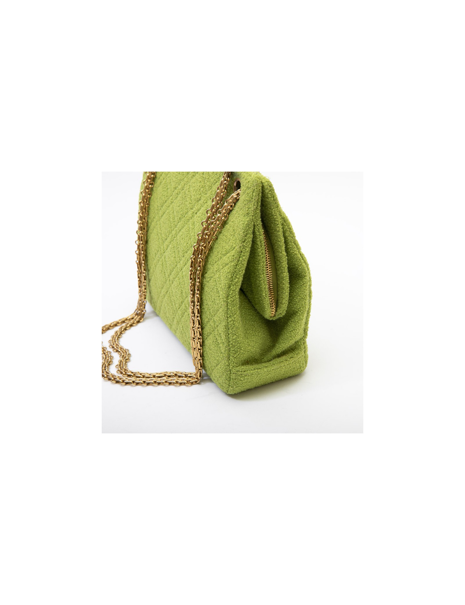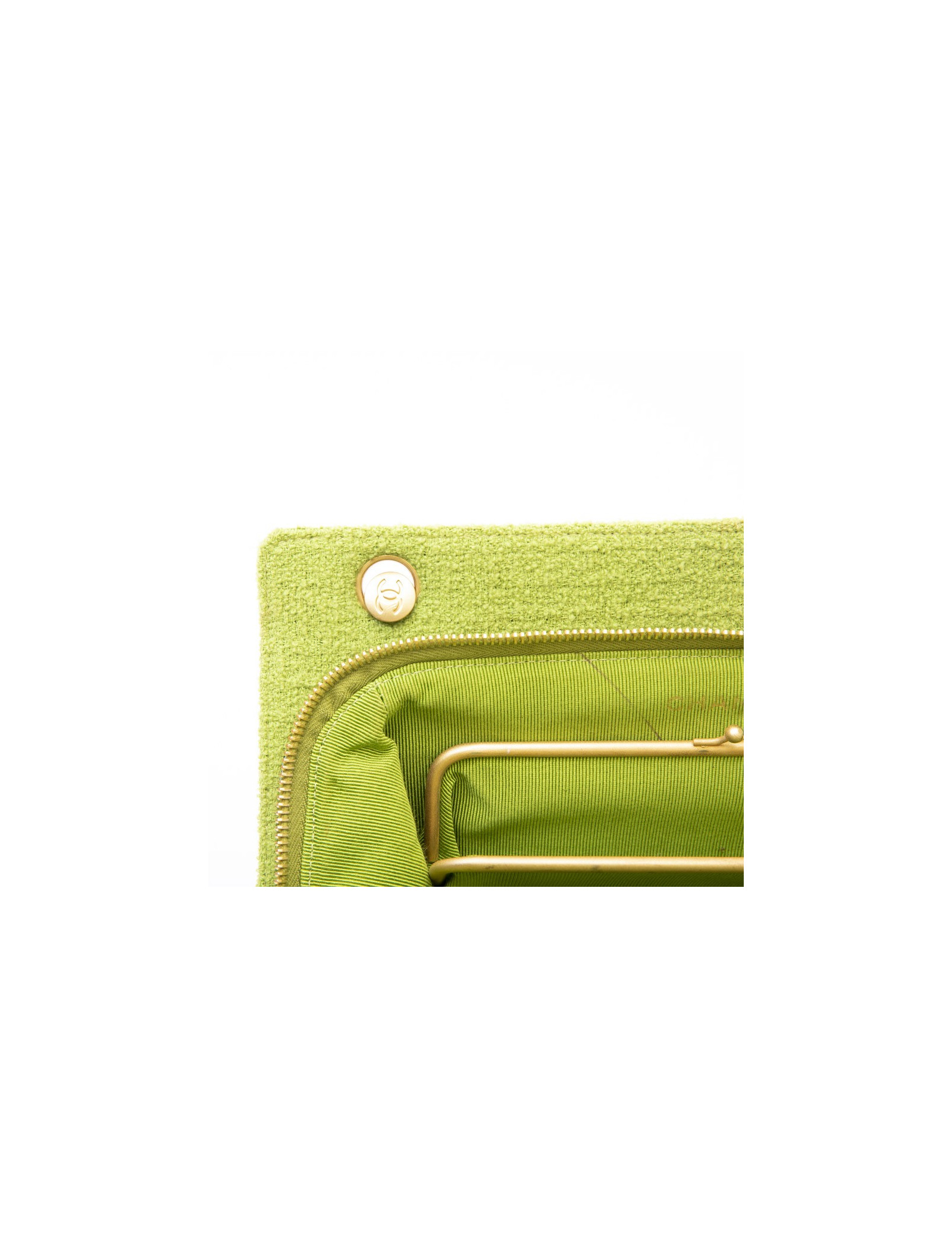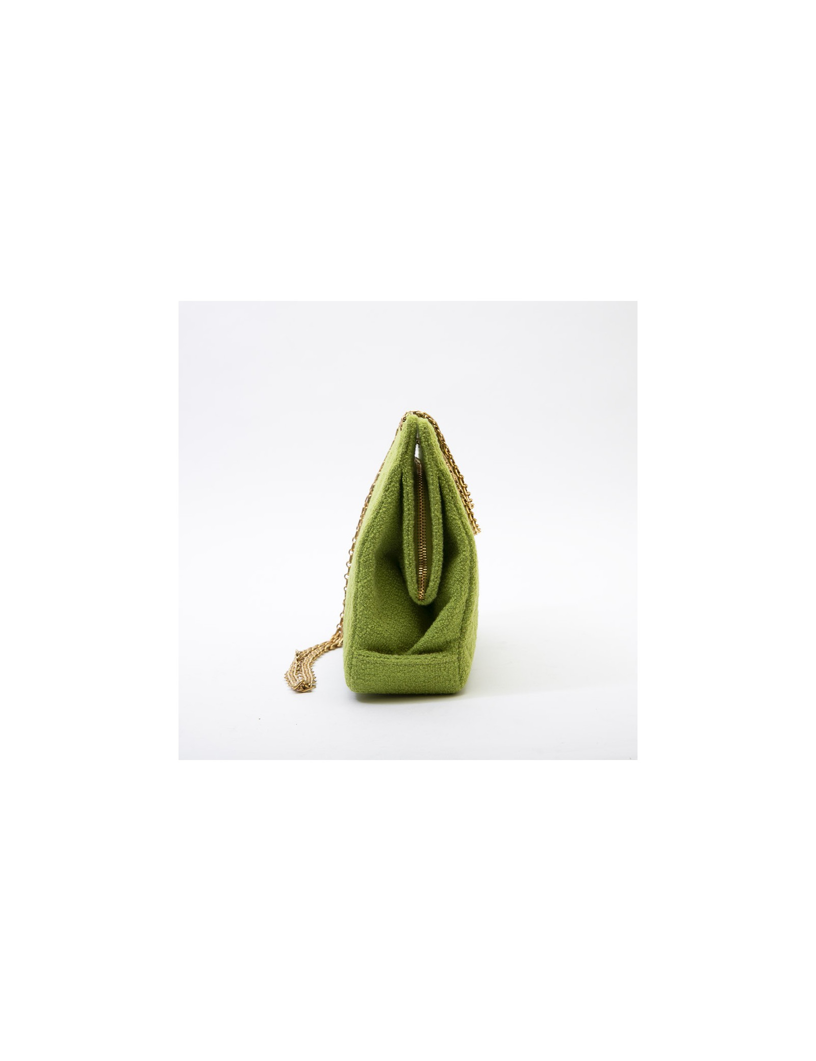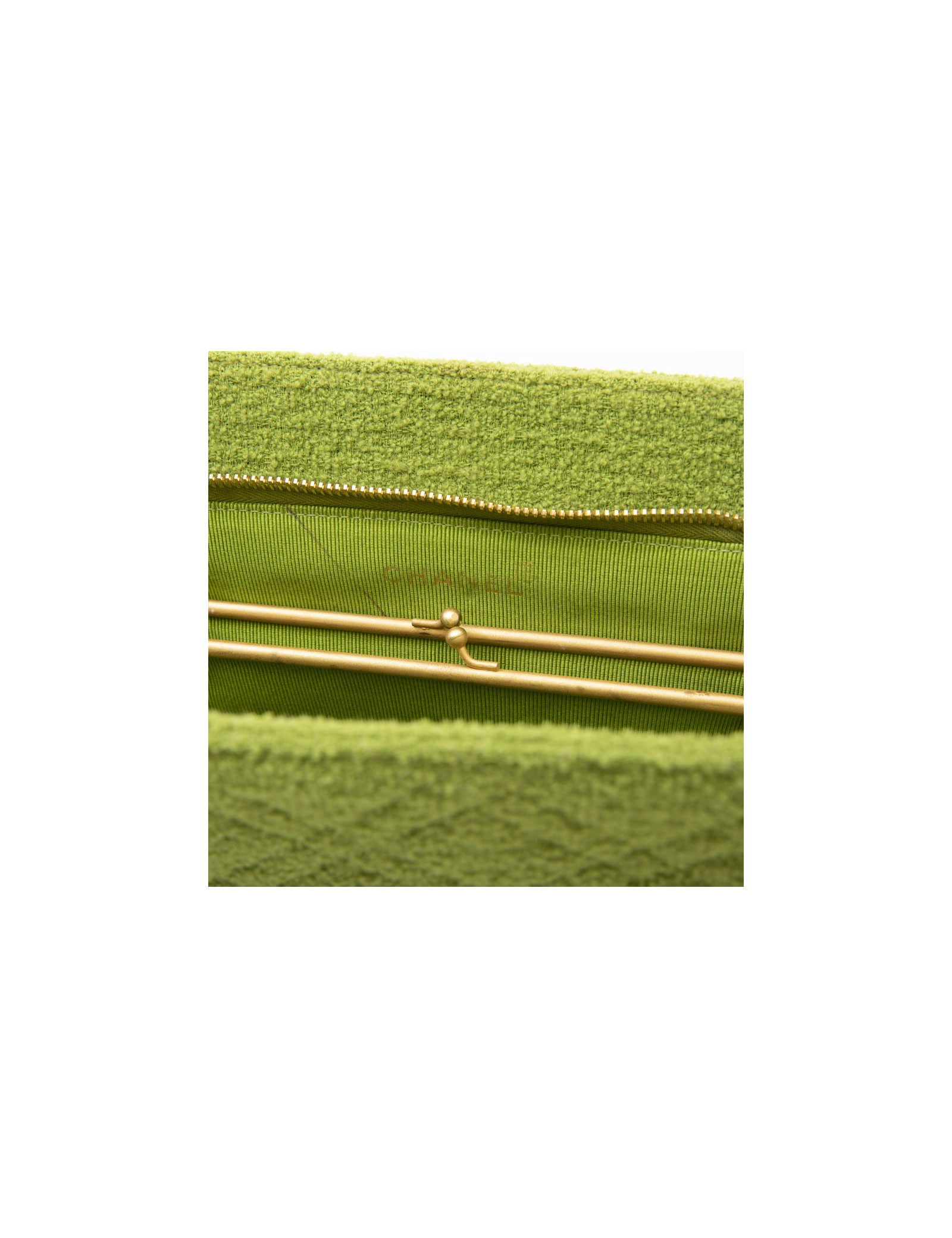 Chanel vintage bag in anise green terry cloth. It is lined in anise green piqué fabric.