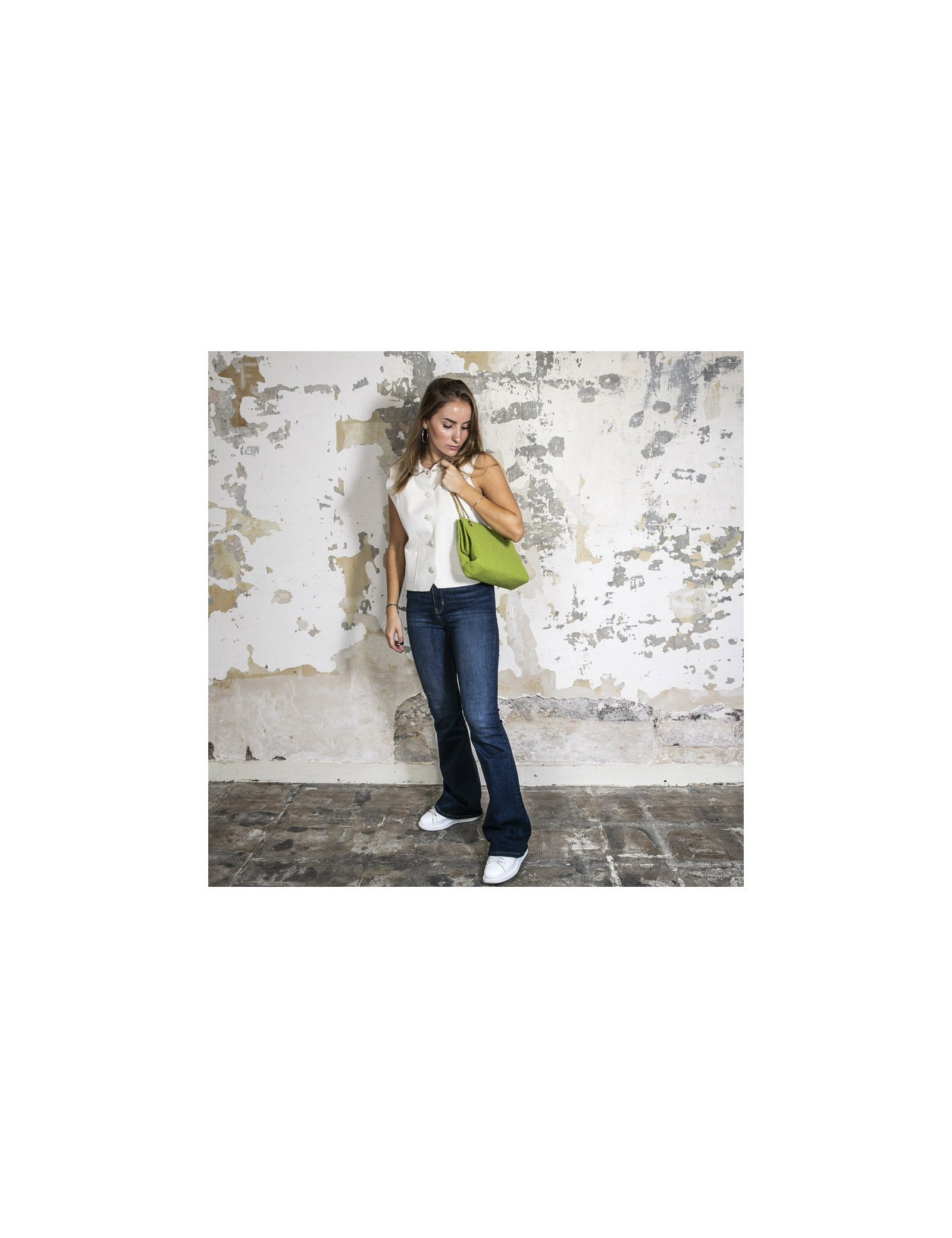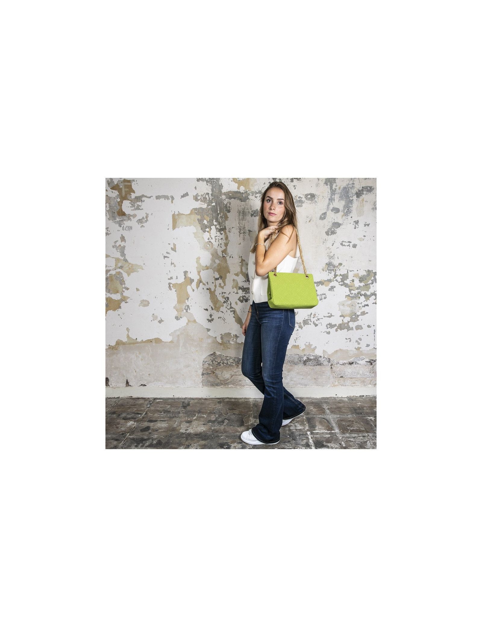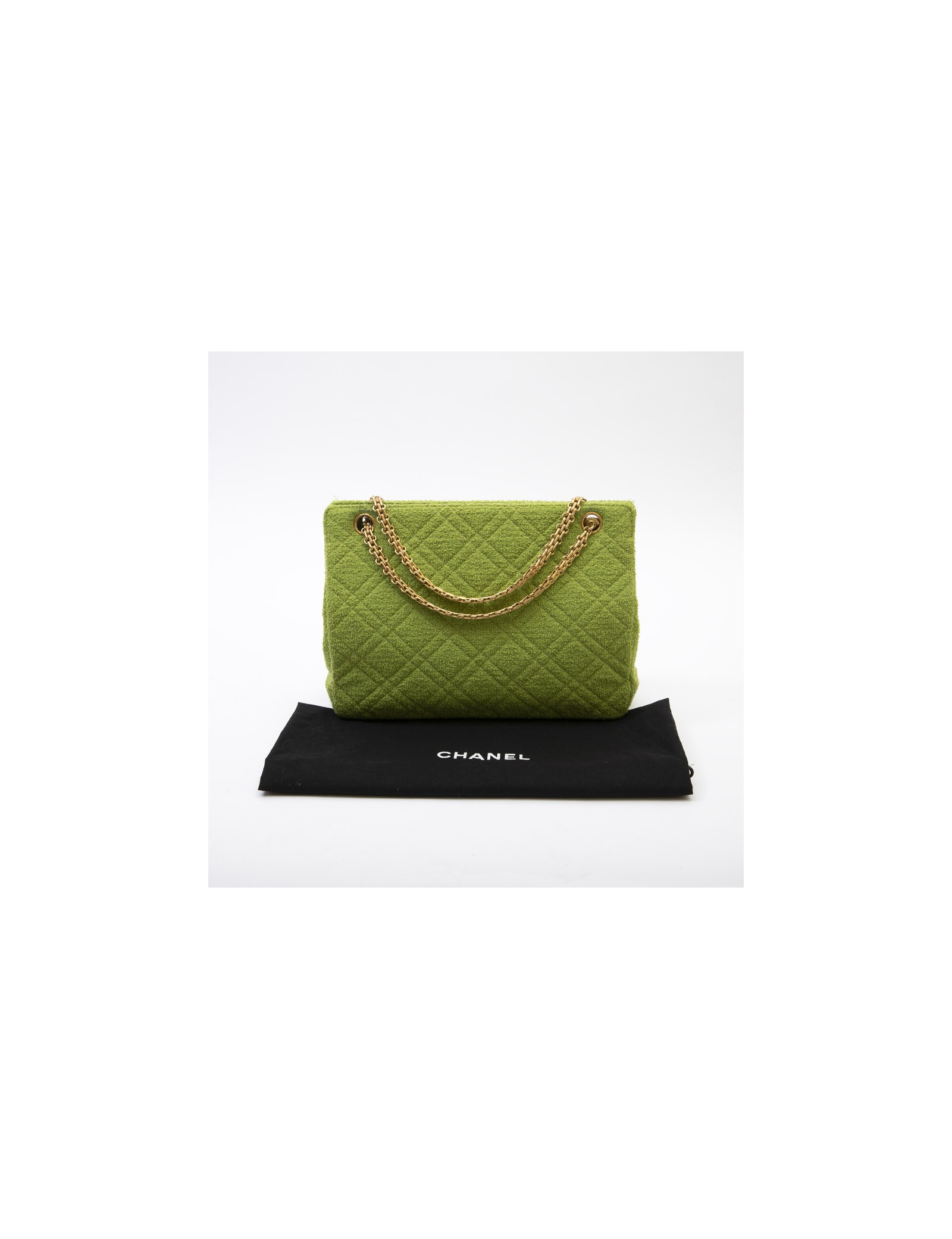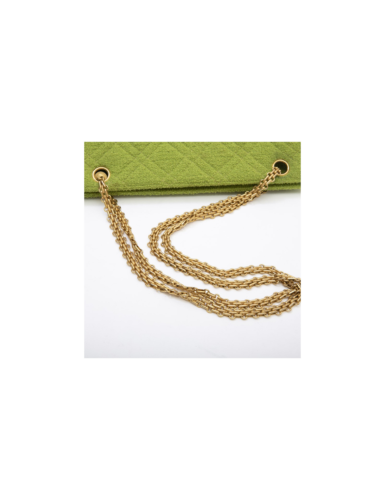 Chanel vintage bag in anise green terry cloth. It is lined in anise green piqué fabric.