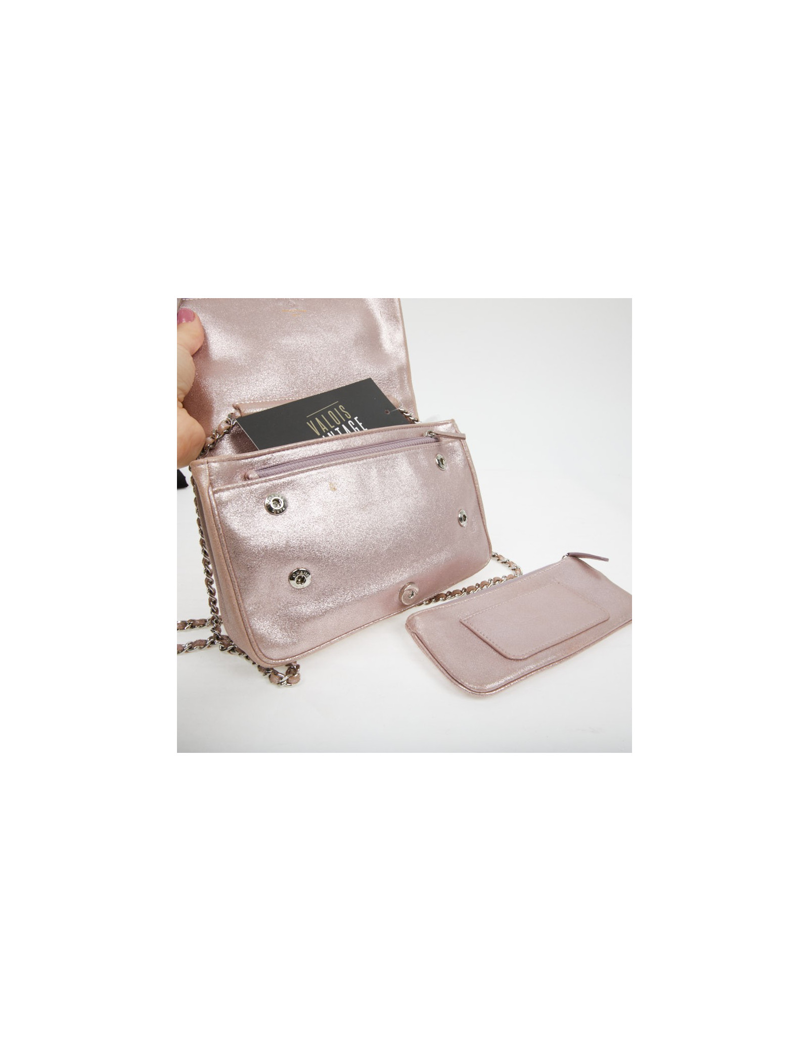 Last items in stock 255 CHANEL Mini 255 CHANEL Bag in pink and silver rhinestones CHANEL 32663 4,800.00 € Mini 255 CHANEL Bag Condition: very good conditionCountry of manufacture: Francegender: femaleMaterial: fabricColor: pink, silverDimensions: 14 x 10 x 6cmShoulder strap: 130 cmHologram: 1463...Authenticity card: noYear: 2010-2011Jewelry: silver metal The + Valois Vintage Paris: delivered in a CHANEL box Add to cart