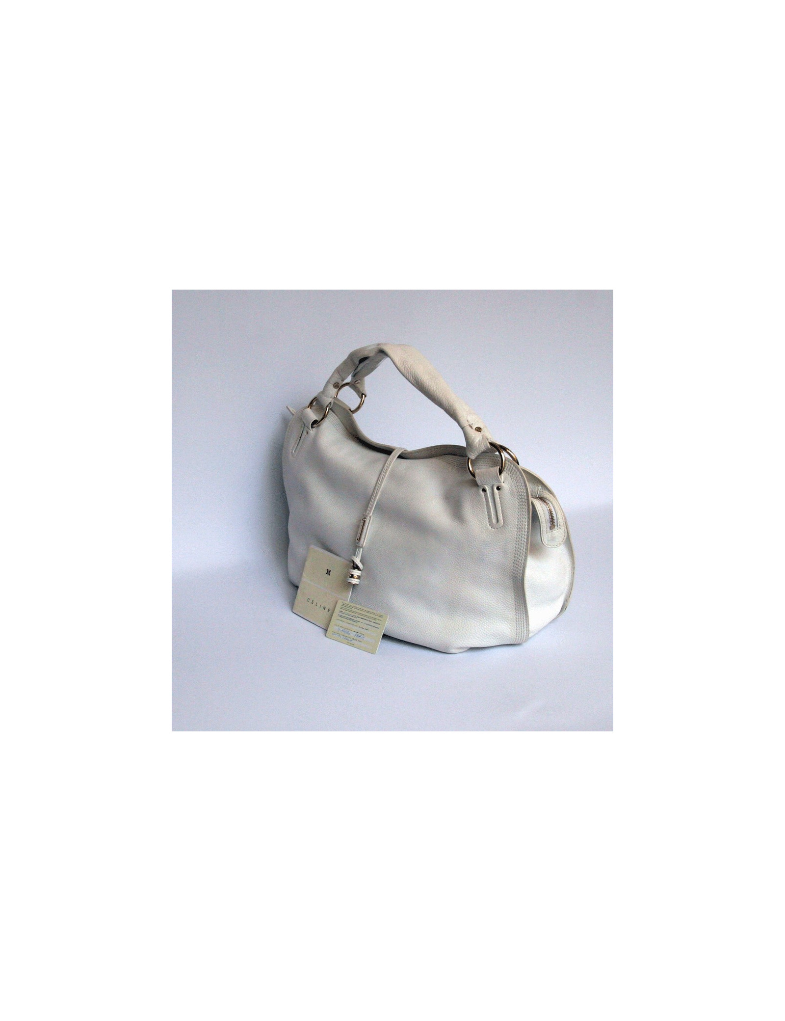 Great white CELINE grained leather tote