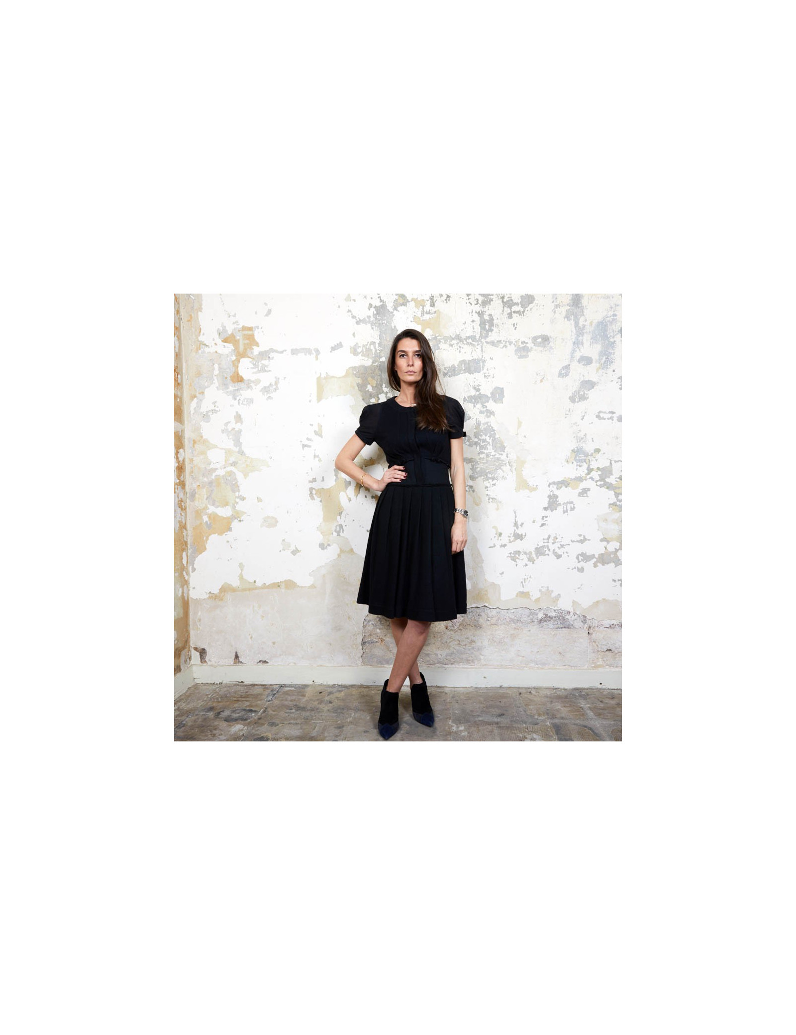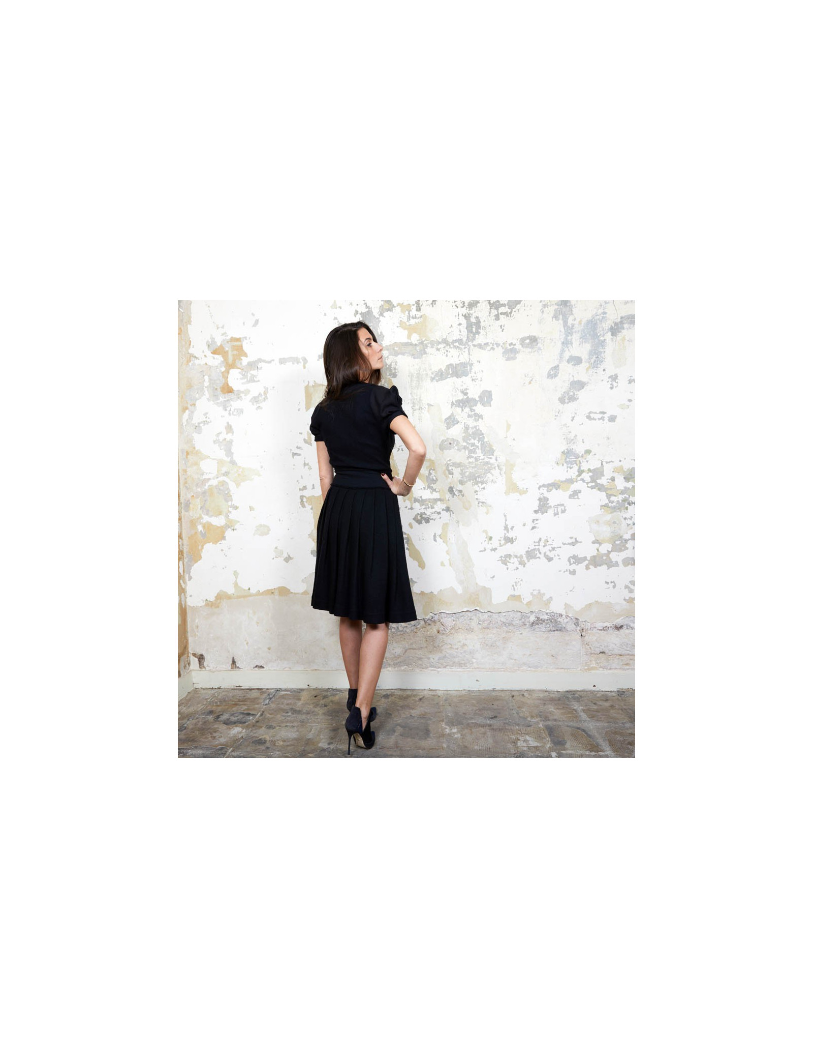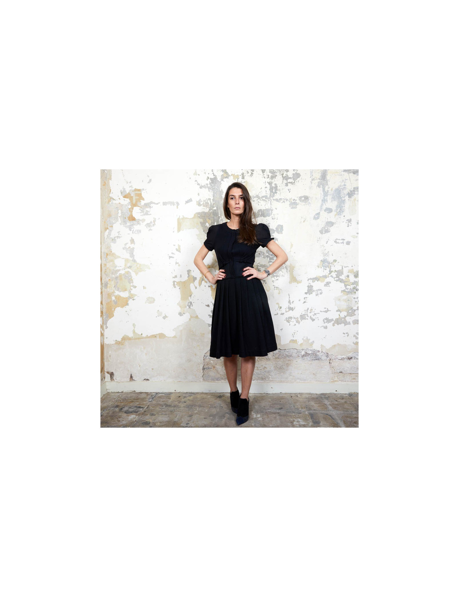 Viktor & Rolf short-sleeved dress with a button closure. It is bent at the waist and pleated and flared. 100% wool. It is lined. It has on the side a long zip of 38 cm.