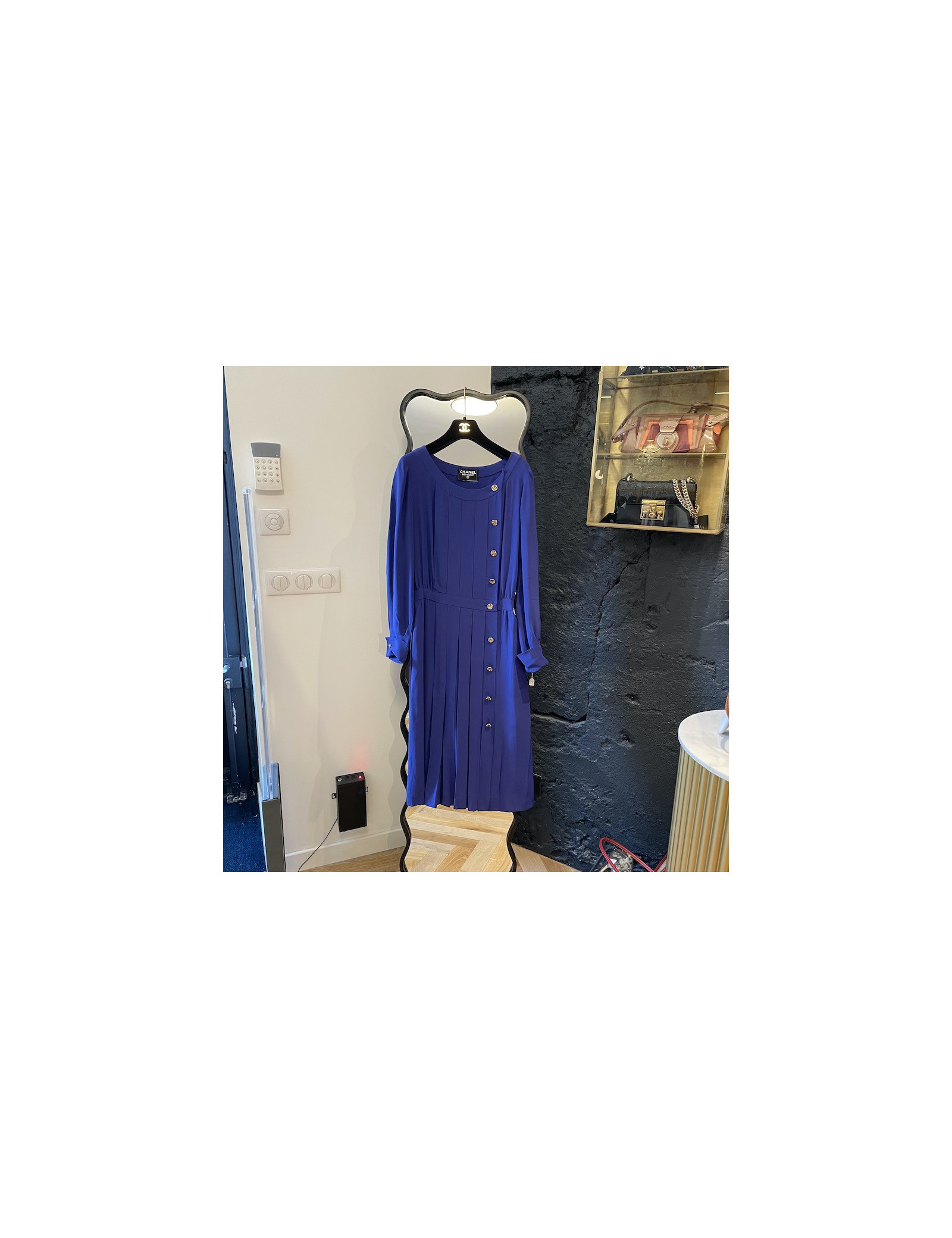 Last items in stock DRESSES CHANEL blue cotton officer dress CHANEL 31654 7,700.00 € CHANEL blue cotton officer dress Condition : very goodMade in France Materials : cotton Lining: silkColors : blue, mother-of-pearlSize : 38FRMeasurements : shoulders: 36 cm, underarms: 48 cm, hips : 30 cm, sleeves length : 30 cm, sleeves width: 30 cm, total height : 94 cm, bottom width : 42 cmYear : Spring 2009 Details: Blue cotton dress with a stand up... Add to cart