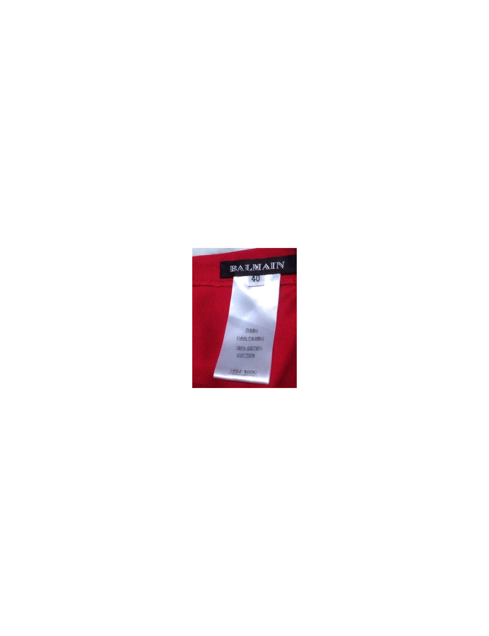 Collector! dress jersey cotton red and set with pearls and Red rhinestones T40 BALMAIN in the back drawing an eagle. This sophisticated dress is open in the back. It is ideally the evening. Manufactured in France, 100% cotton. (price public 4500euros).