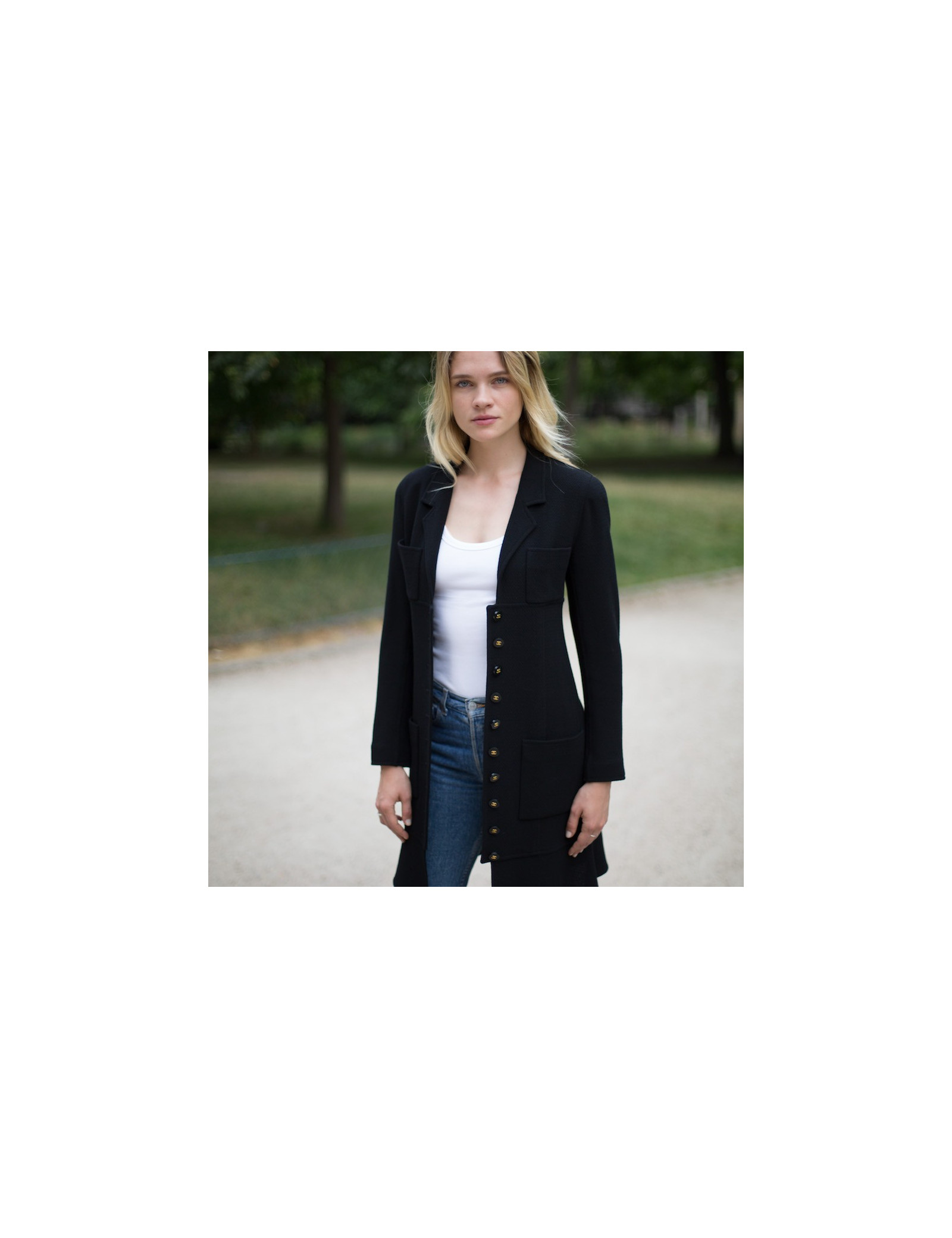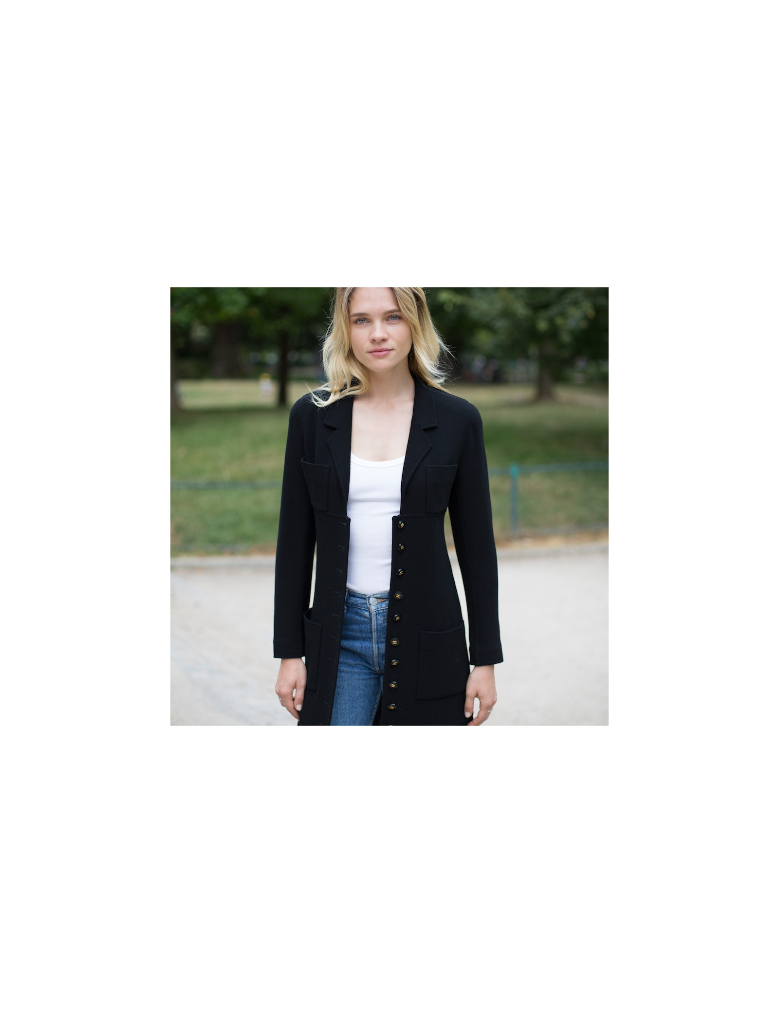 Last items in stock DRESSES ALAIA T 38 en in perforated Black wool coat ALAIA 20266 1,700.00 € Great coat ALAÏA perforated Black wool sleeveless to large shawl collar, it is buttoned Crusader on the side with 2 buttons 1 is invisible inside. < p style = "text - align:center;" >Flat dimensions: width shoulders drooping 46 cm, chest 40 cm, height 34 cm, scale from low to the 201 cm, total height 99cm back. Add to cart