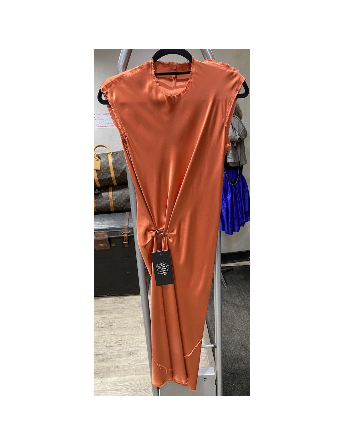 -195.00 € Last items in stock NIGHT DRESSES Evening dress blue sequined CHANEL CHANEL 12749 1,305.00 € 1,500.00 € Blue dress sequined CHANEL new Collection spring/summer 2008 (photo of the show online, the dress that we offer for sale has no the node that was an option) front straps measure: 17 cm, leg opening: 16 cm, slit at the back: 29 cm, chest: back: 35 cm, in front: 45 cm. Waist 71 cm, total length: 104 cm hem of 5 cm material: 100% silk & sequins coat... Add to cart