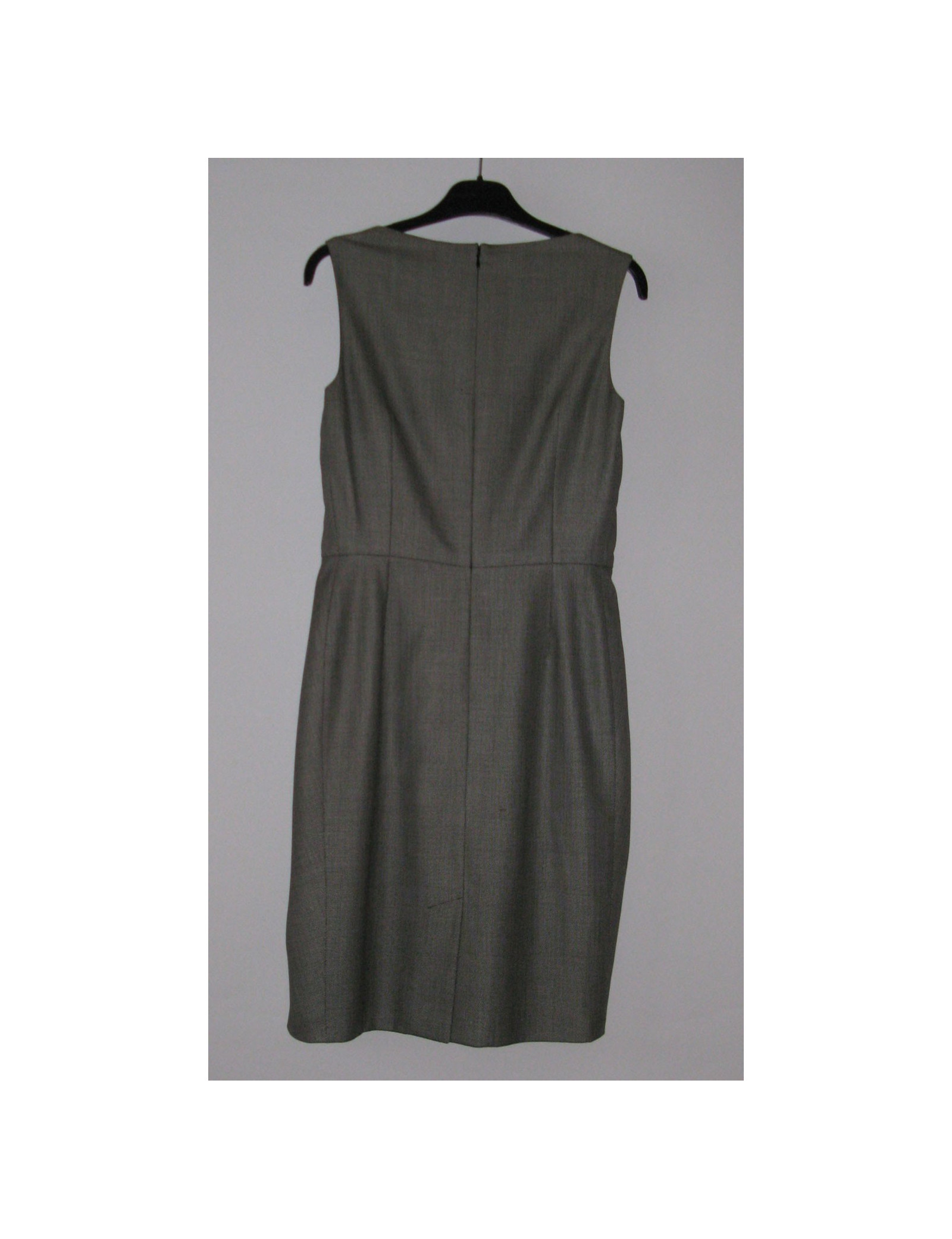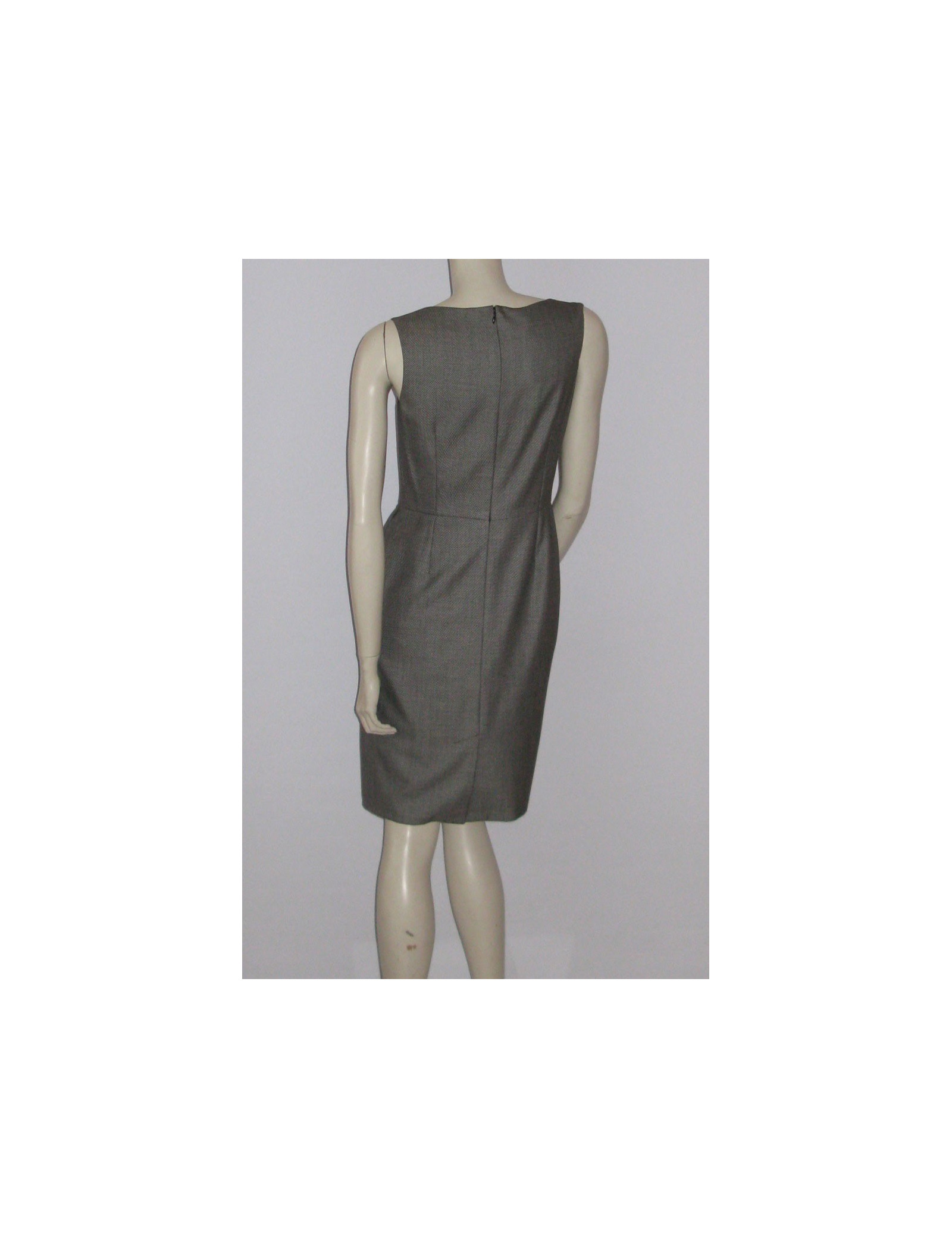 Dress T38FR Yves Saint Laurent grey, rounded collar, sleeveless, length below the knee, adjusted line by 2 clips at the front and 2 at the back. Horizontal line turn everything from size to your silhouette in value. Long zip closure to the "invisible" added back a small slit at the back at the bottom. Composition: 80% wool, 20% silk.