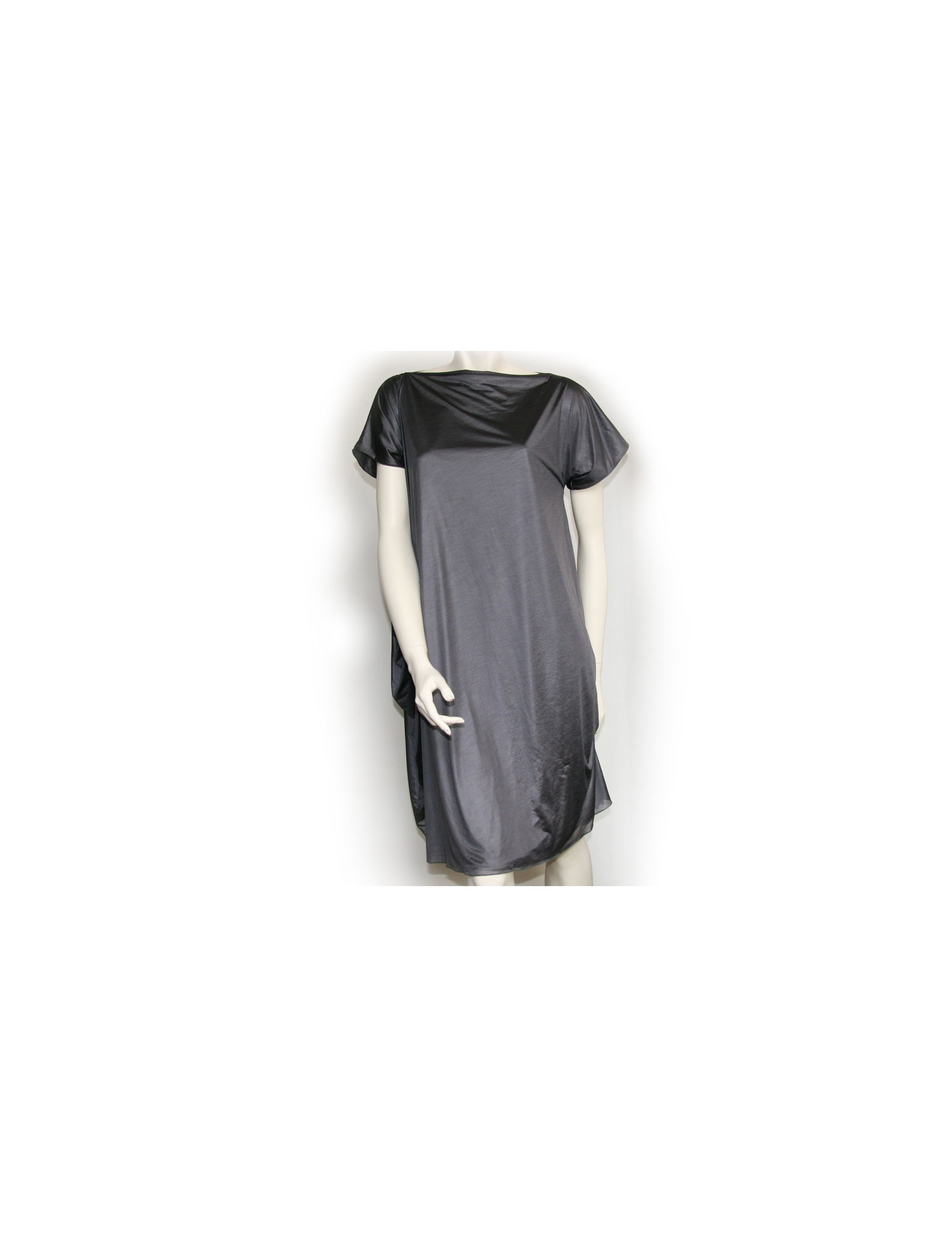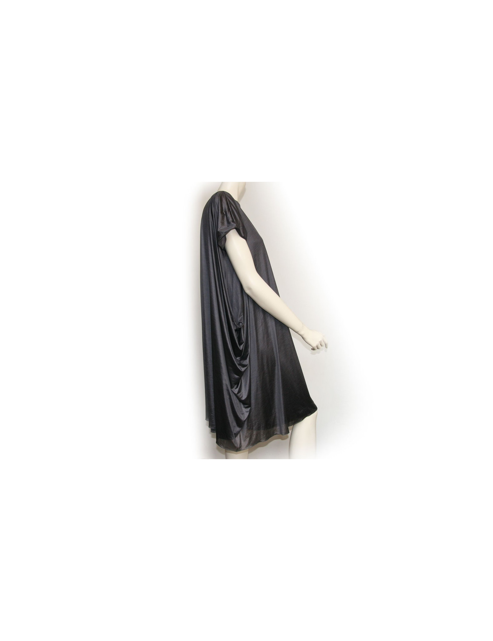Beautiful dress with short sleeves, fluid and extremely light, 100% polyester fiber (makes think to silk), grey, Bottega Veneta. Size 40. Triple-layer first 2 dresses are straight and the third dress is like a drape expands on one side. It has never been worn.