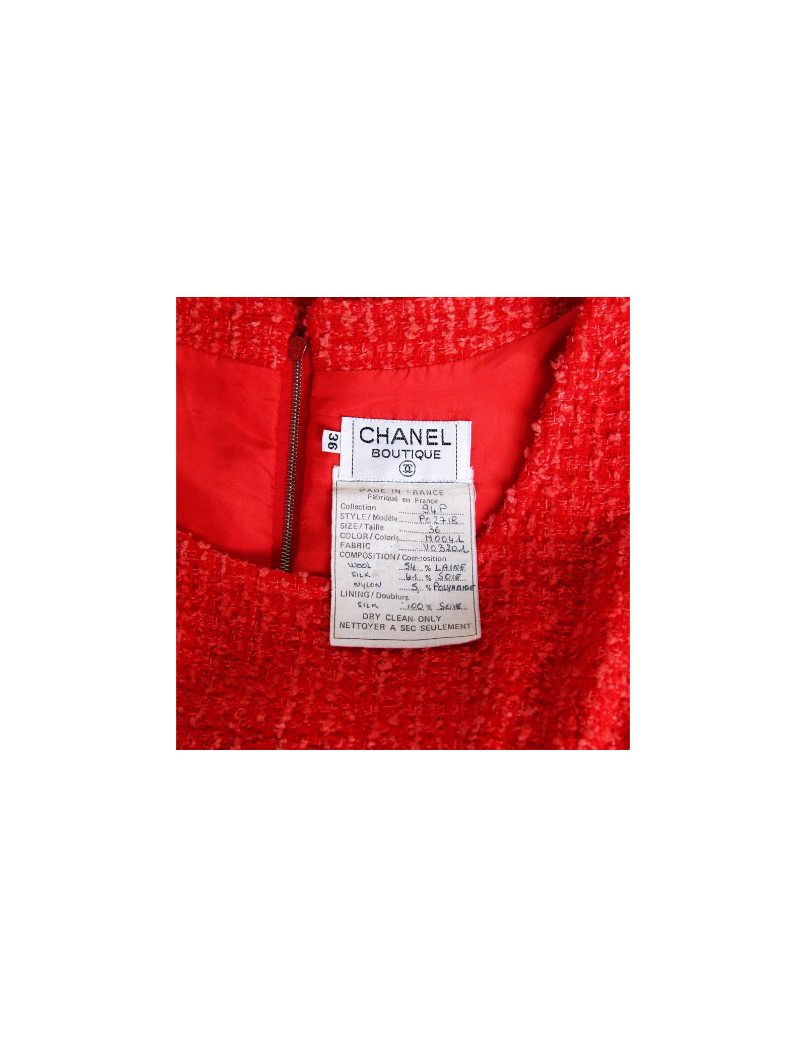 Pretty CHANEL dress in coral tweed, Chanel, size 36. TRES 90 ' wise dress!