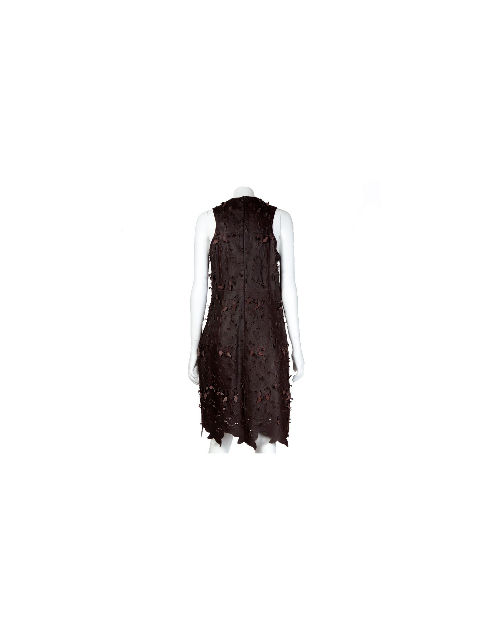 Pretty dress Carven sleeveless, dark plum color. 100% lamb leather, antique effect.