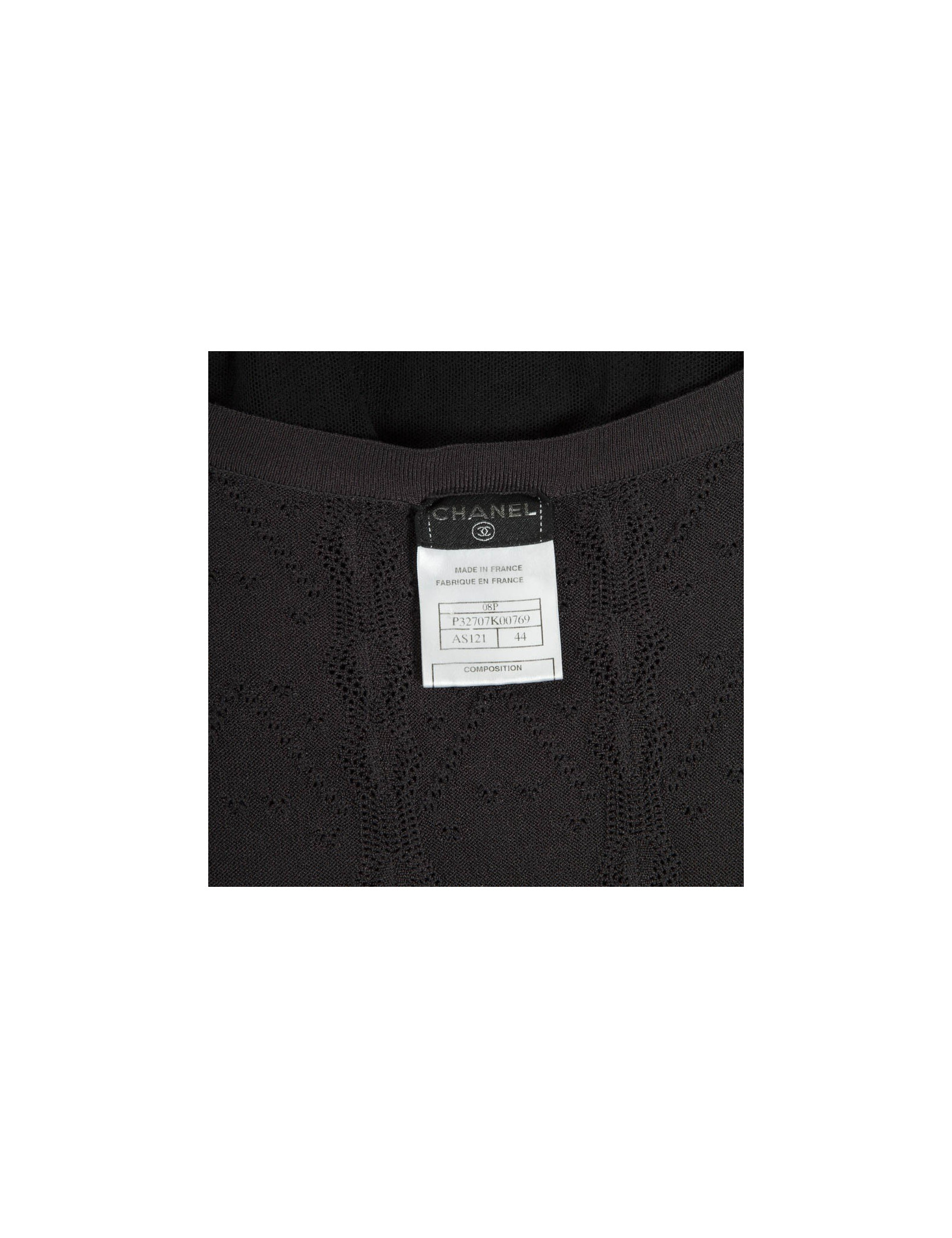 -101.00 € Last items in stock DRESSES Dress black CHANEL T 44 CHANEL 13582 999.00 € 1,100.00 € Dress 100% viscose/rayon, silk, size 44 effect CHANEL. This round neck dress is extremely fluid and elegant. His only ornament is a small plaque hammered silver liveried CC. It has two shoulder pads. The collar is embellished with small fringes. Length: 95 cm, Zip back length: 55 cm Sleeve length: 22 cm, Shoulder width: 42 cm Chest width: 50 cm Add to cart