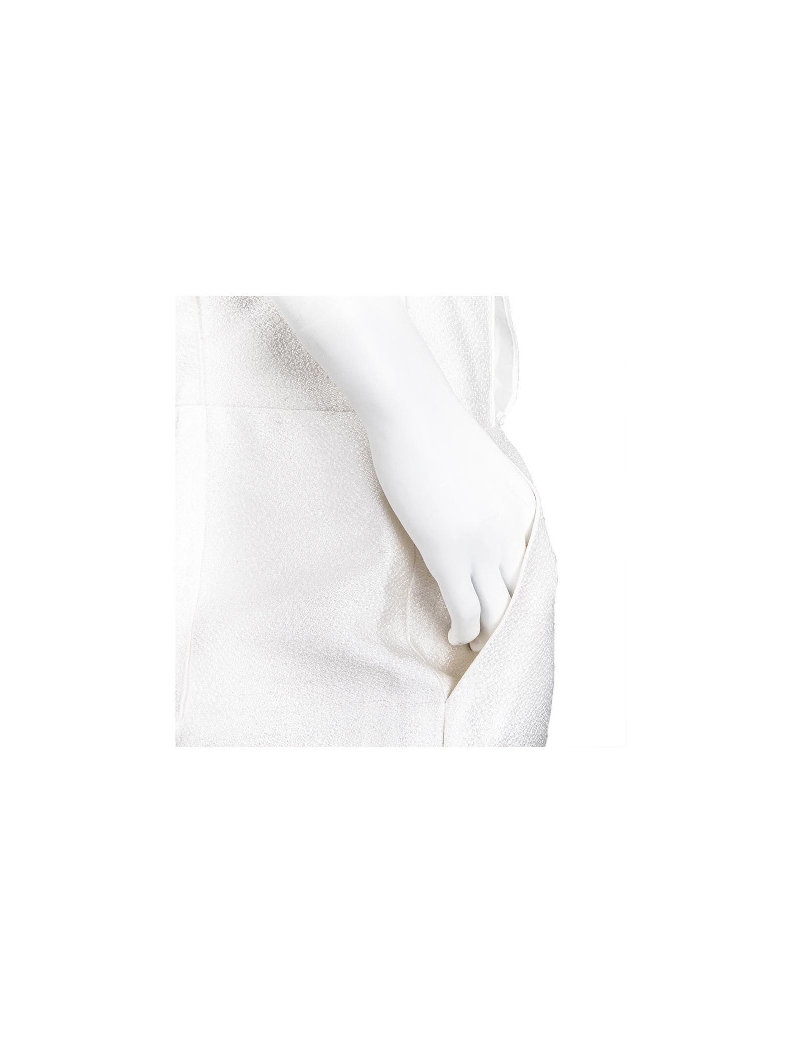 Adorned with silk which gives a reflection satin dress, lined with silk white, composed of two side pockets, slightly split at the back and closed with a concealed zip. She is in very good condition.