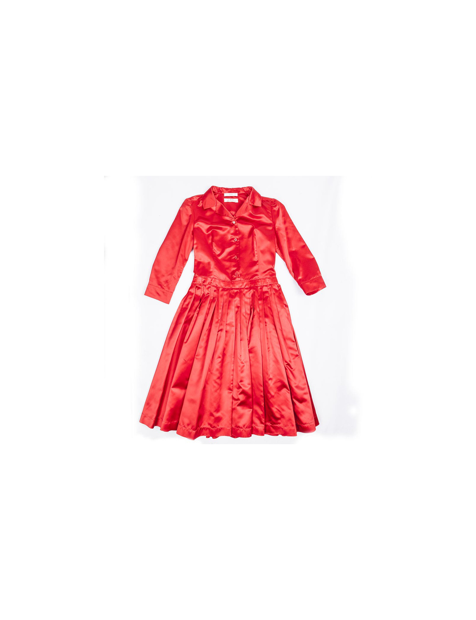 Very chic. Prada red silk dress size 40 Italian (36 FR). Marked size and wide skirt with pleats, three-quarter sleeves.