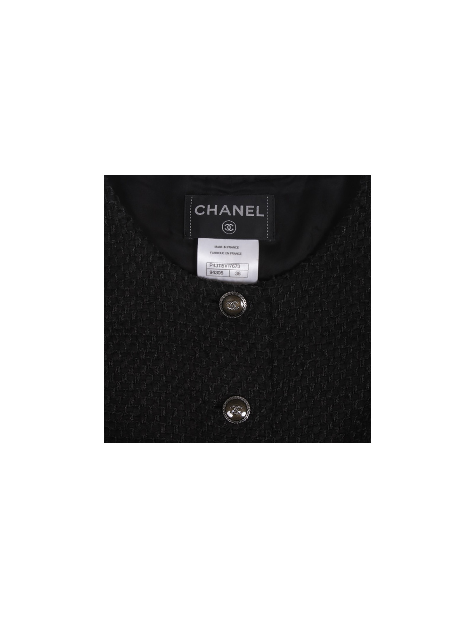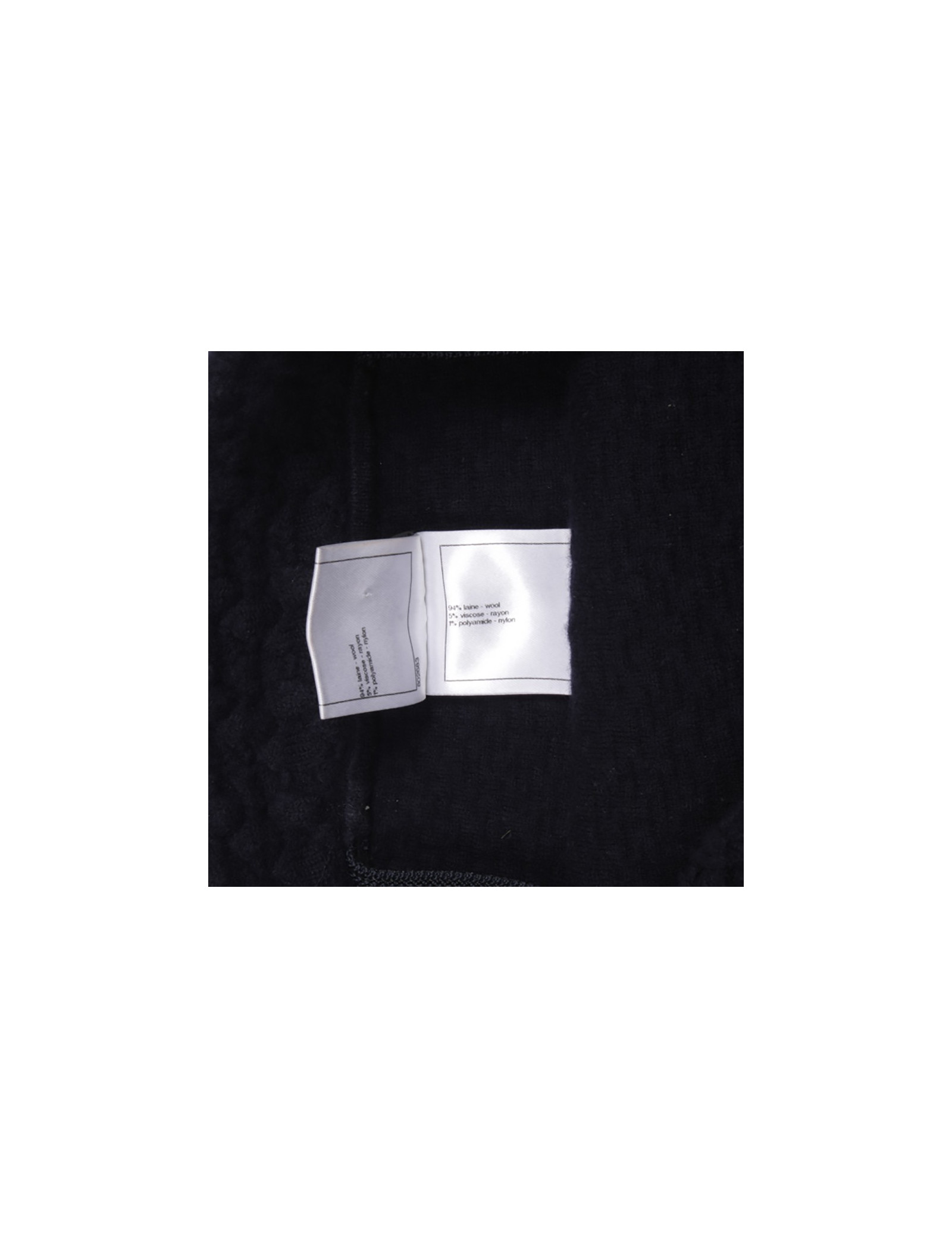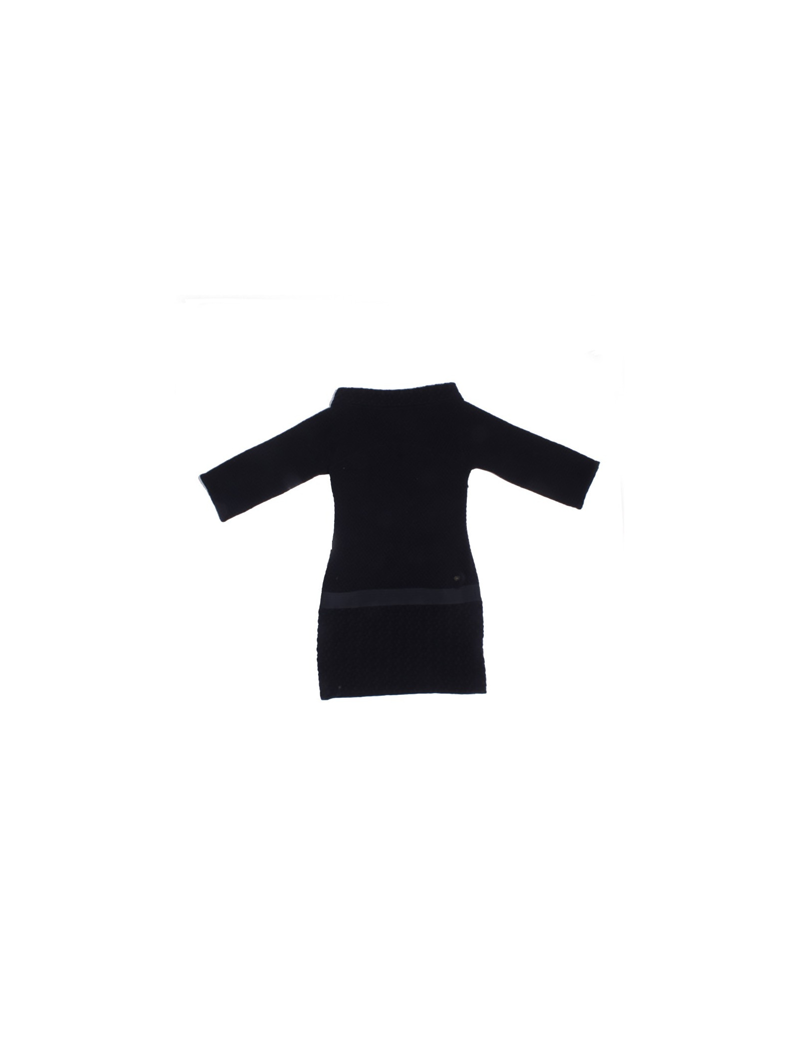 Robe Chanel bleu marine en laine stretch, col bateau à manche 3/4,