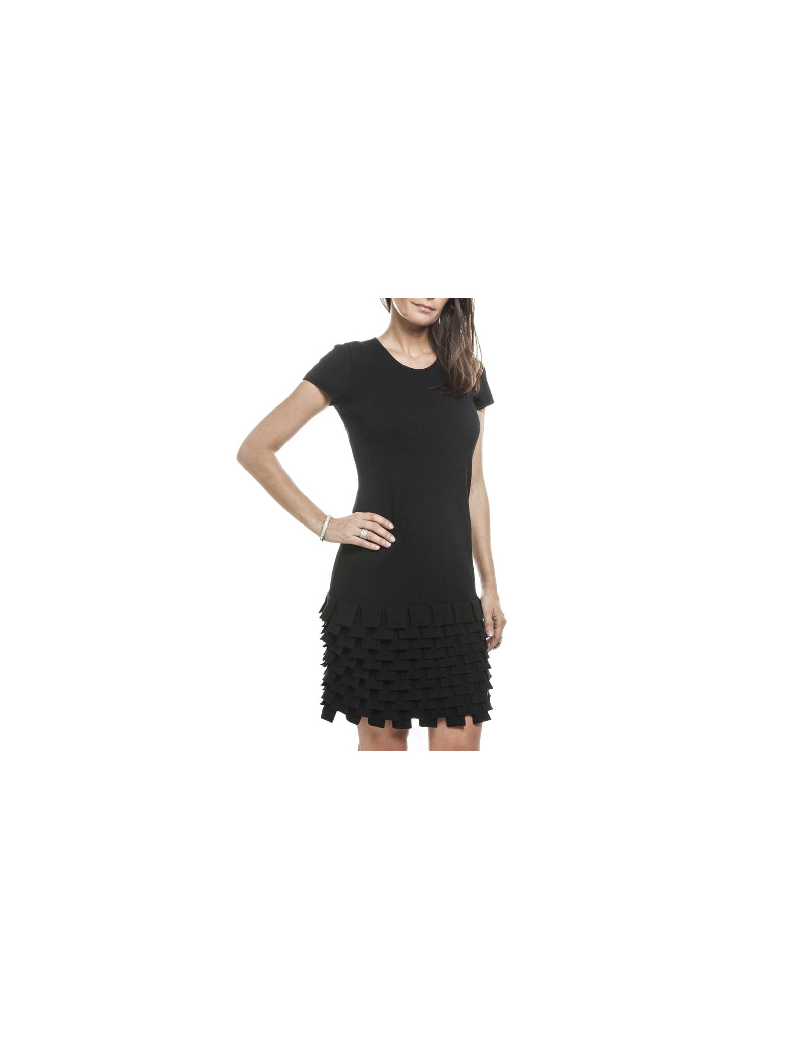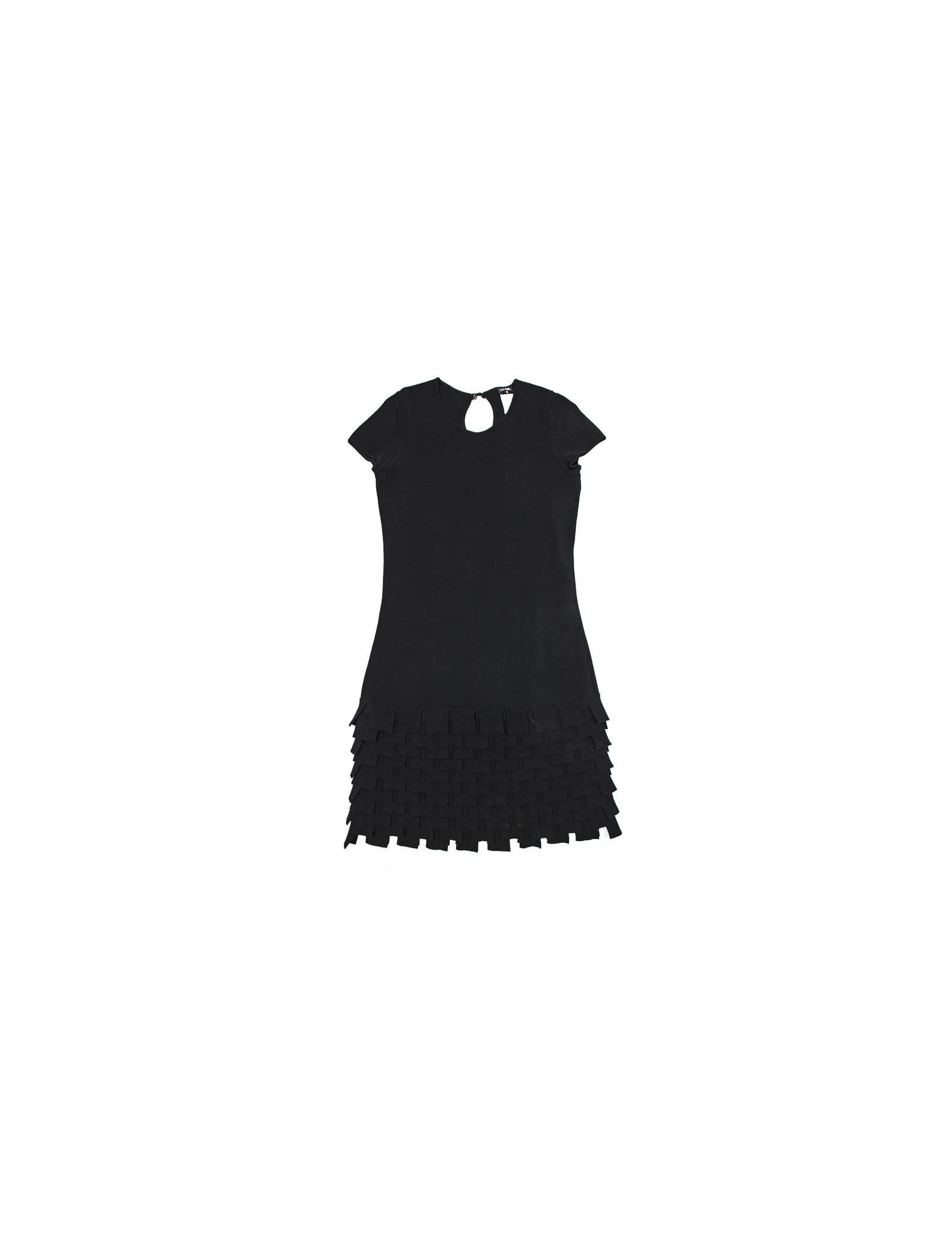 The House of Chanel in black viscose dress. Size 38 fr. small ruffles at the bottom of the dress.