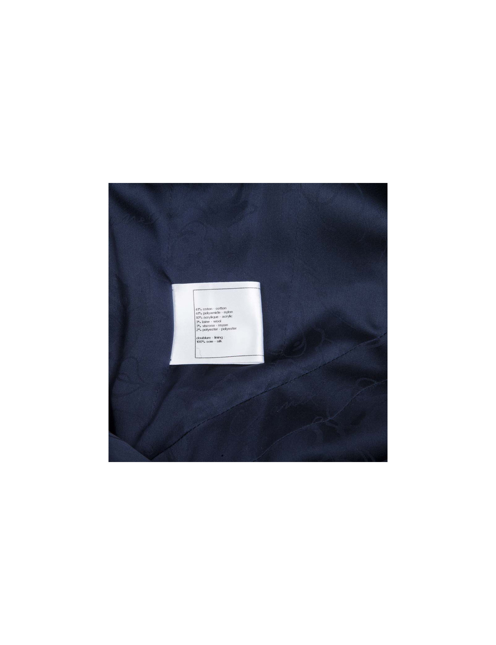 Dimensions à plat : largeur d'épaule 41 cm, largeur sous les aisselles 40 cm, la taille mesure 37 cm. Très bon état. (Absence d'étiquette de taille). Doublure en soie bleu marine monogram. Elle s'ouvre à l'arrière par un fermeture éclair de 60 cm de long.