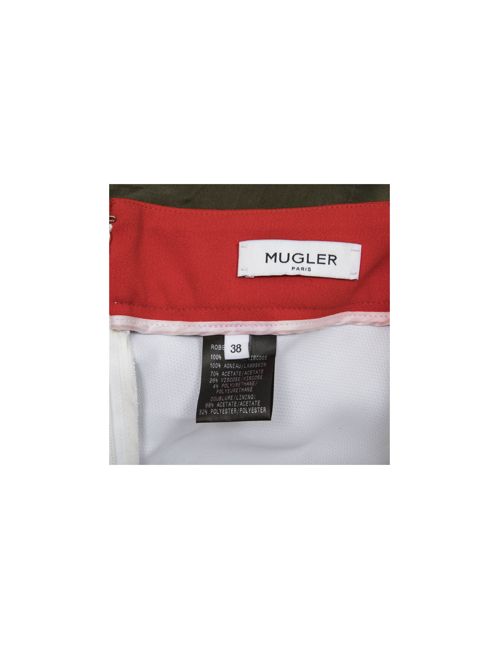 Collector! Mugler backless dress in khaki lambskin. The lining is green under the bust. Size 38