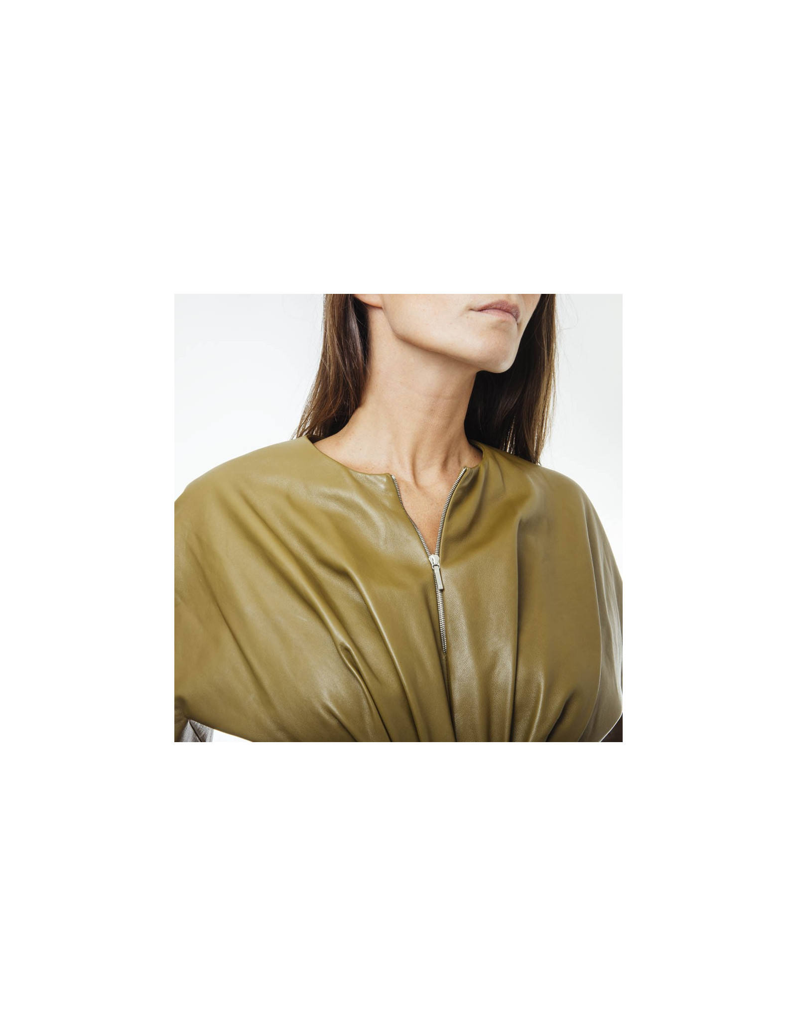 THIERRY MUGLER T 38 backless dress in khaki lambskin leather