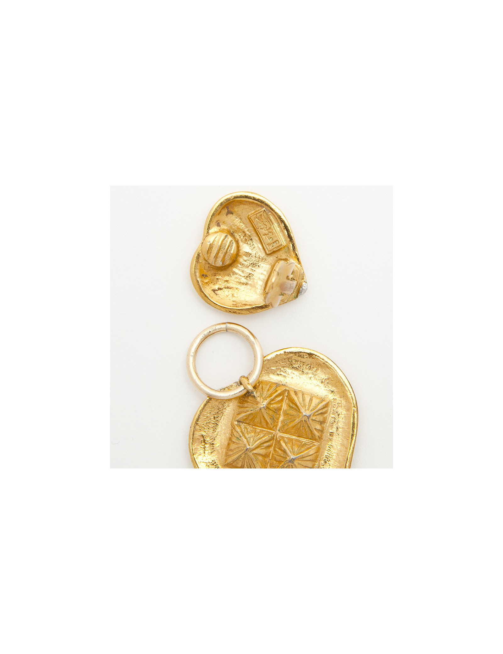 Sold EARRINGS CHRISTIAN LACROIX vintage gilded clip-on earrings CHRISTIAN LACROIX 28084 320.00 € CHRISTIAN LACROIX vintage gilded clip-on earrings Condition: goodMaterial: gold plated metalColor: goldMeasurements: 4 x 4 cm AUTHENTICITY CERTIFIED by our expert team since 1998. View