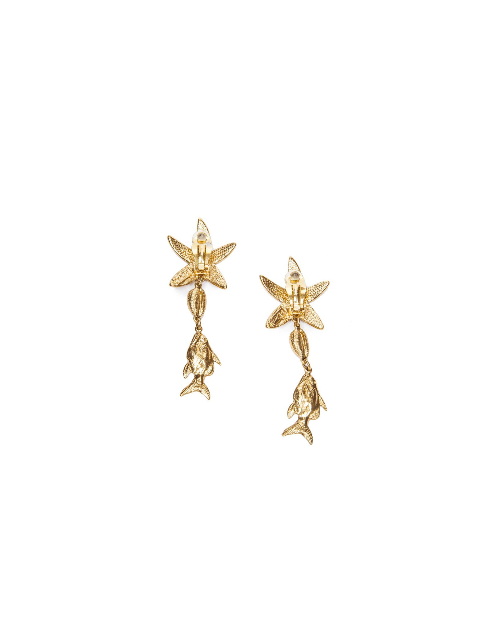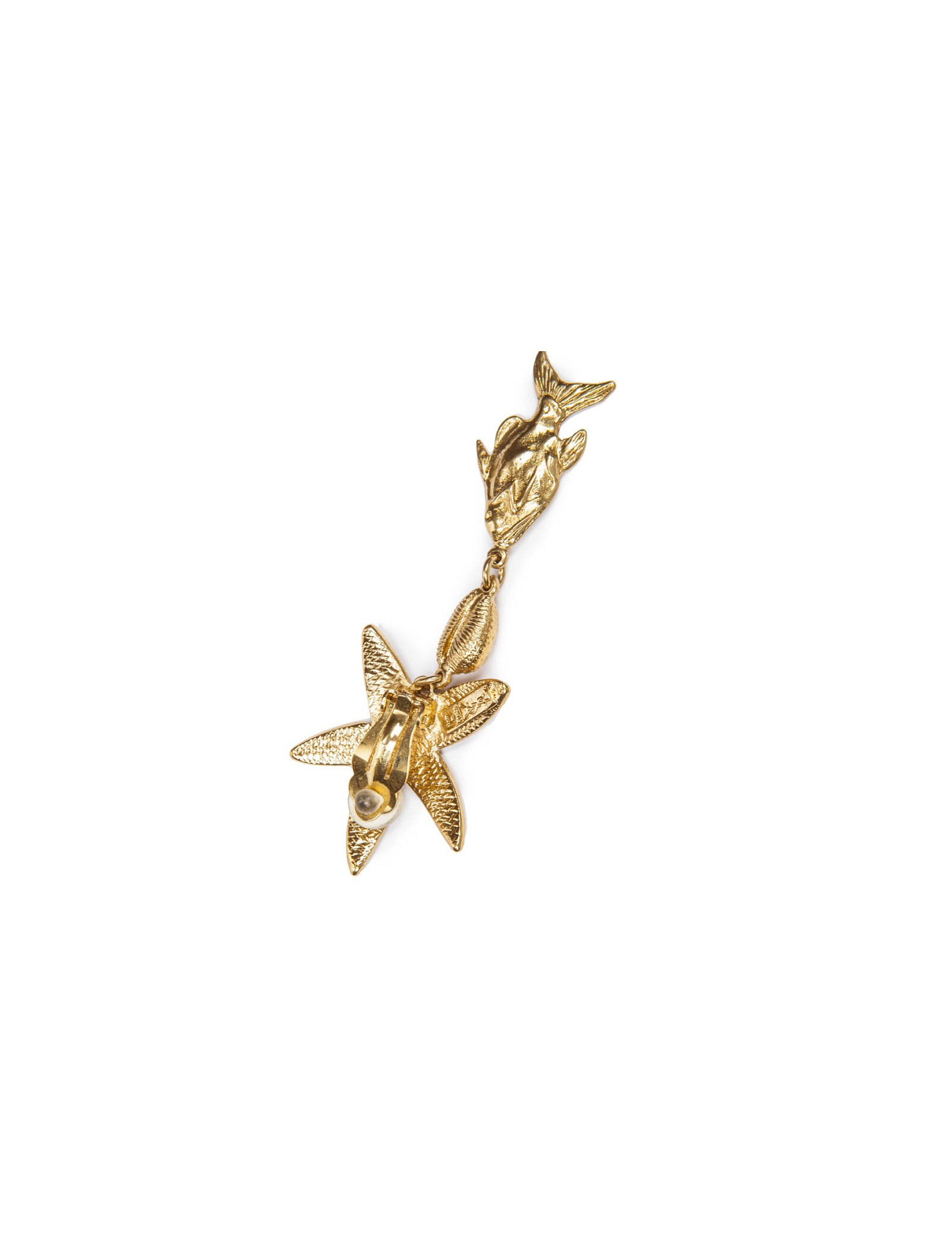 YSL YVES SAINT LAURENT vintage starfish and fish pendant clip on earrings