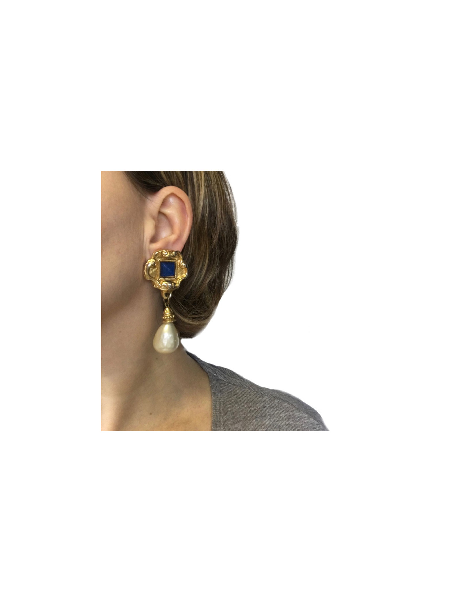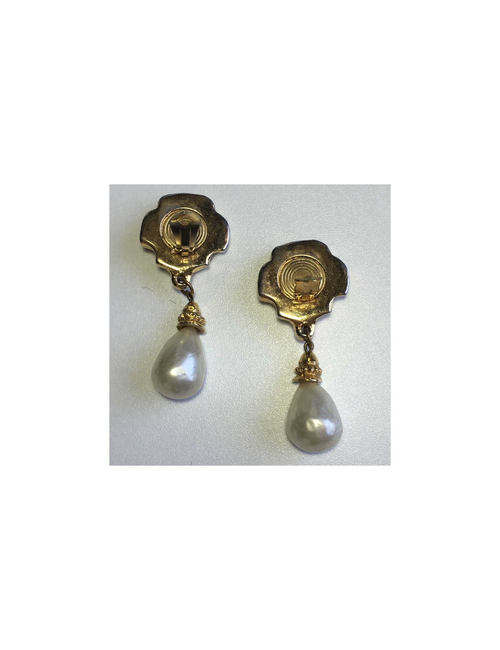EARRINGS SCHERRER Vintage gold clip-on earrings JEAN-LOUIS SCHERRER 34415 190.00 € SCHERRER Vintage gold clip-on earrings Condition : very goodMade in FranceMaterial : metal, enamelColors : gold, amethyst, mother-of-pearlMeasurements : 2.2 x 3.6 cmHardware : gold finish metalStamp :yesDetails : vintage, pendant earrings with a small pearly bead Add to cart