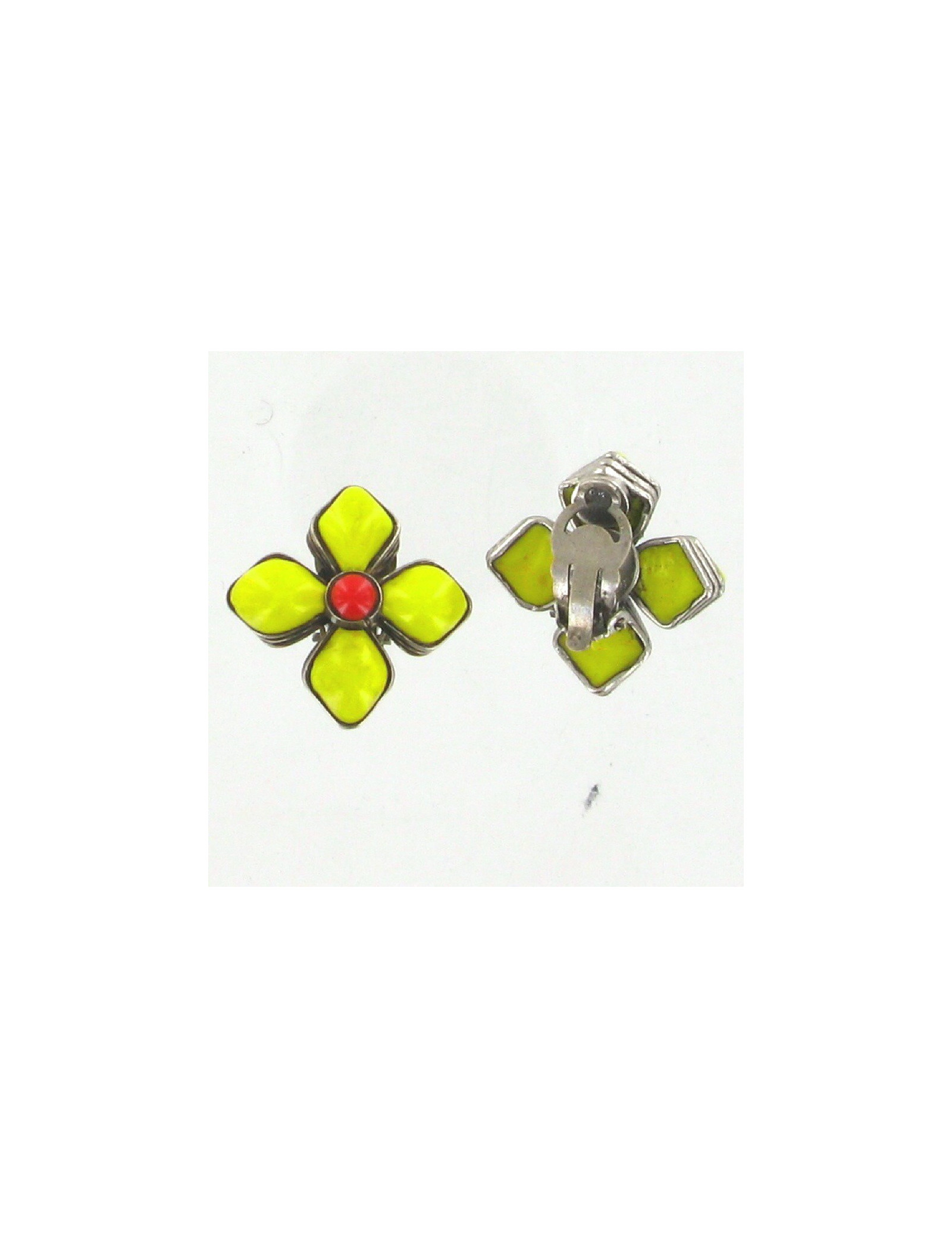 Clips flowers vintage CHANEL yellow and red glass
