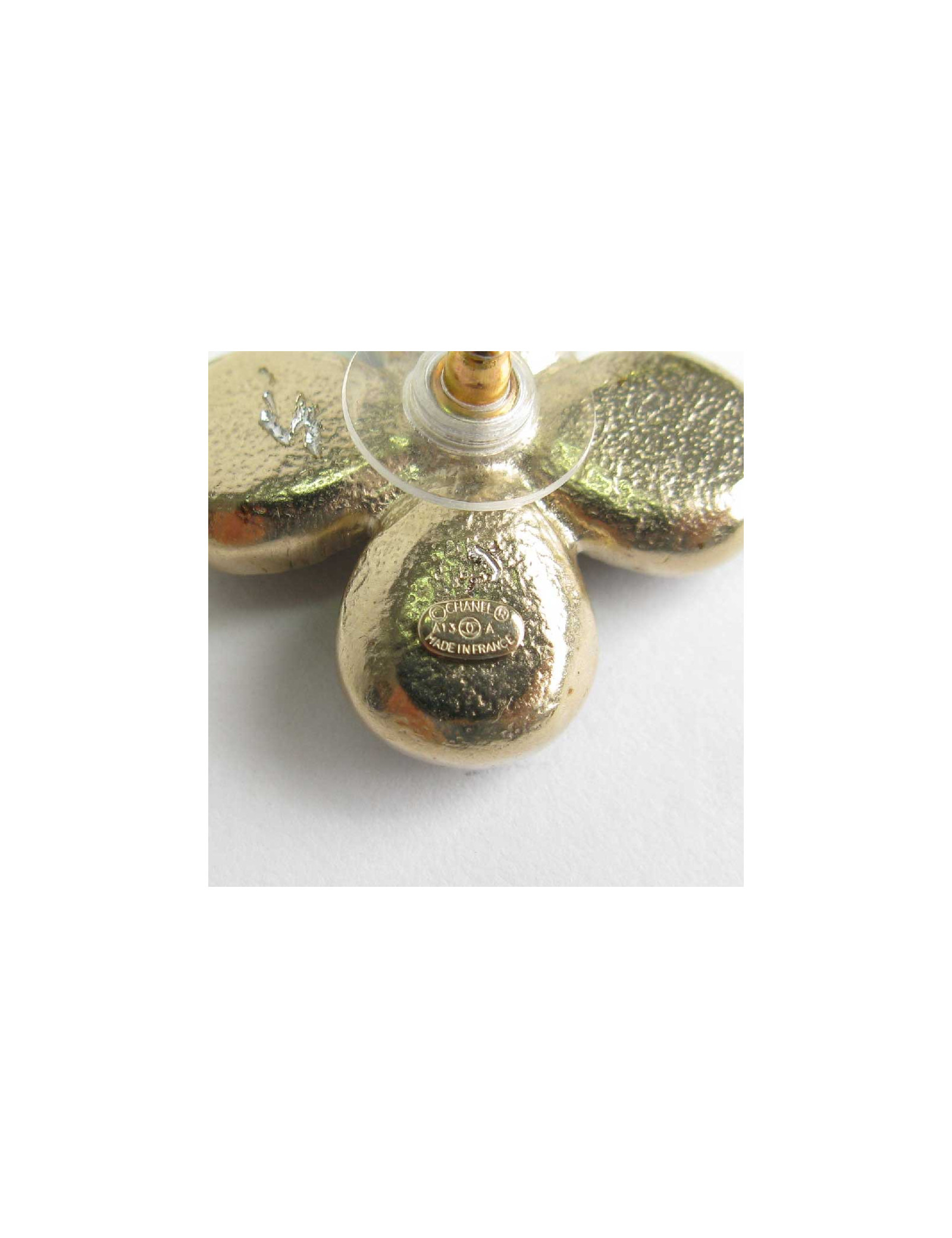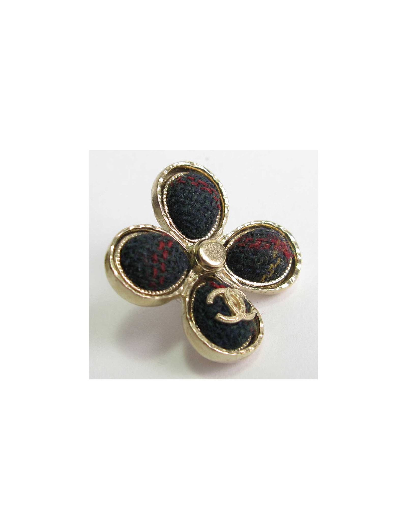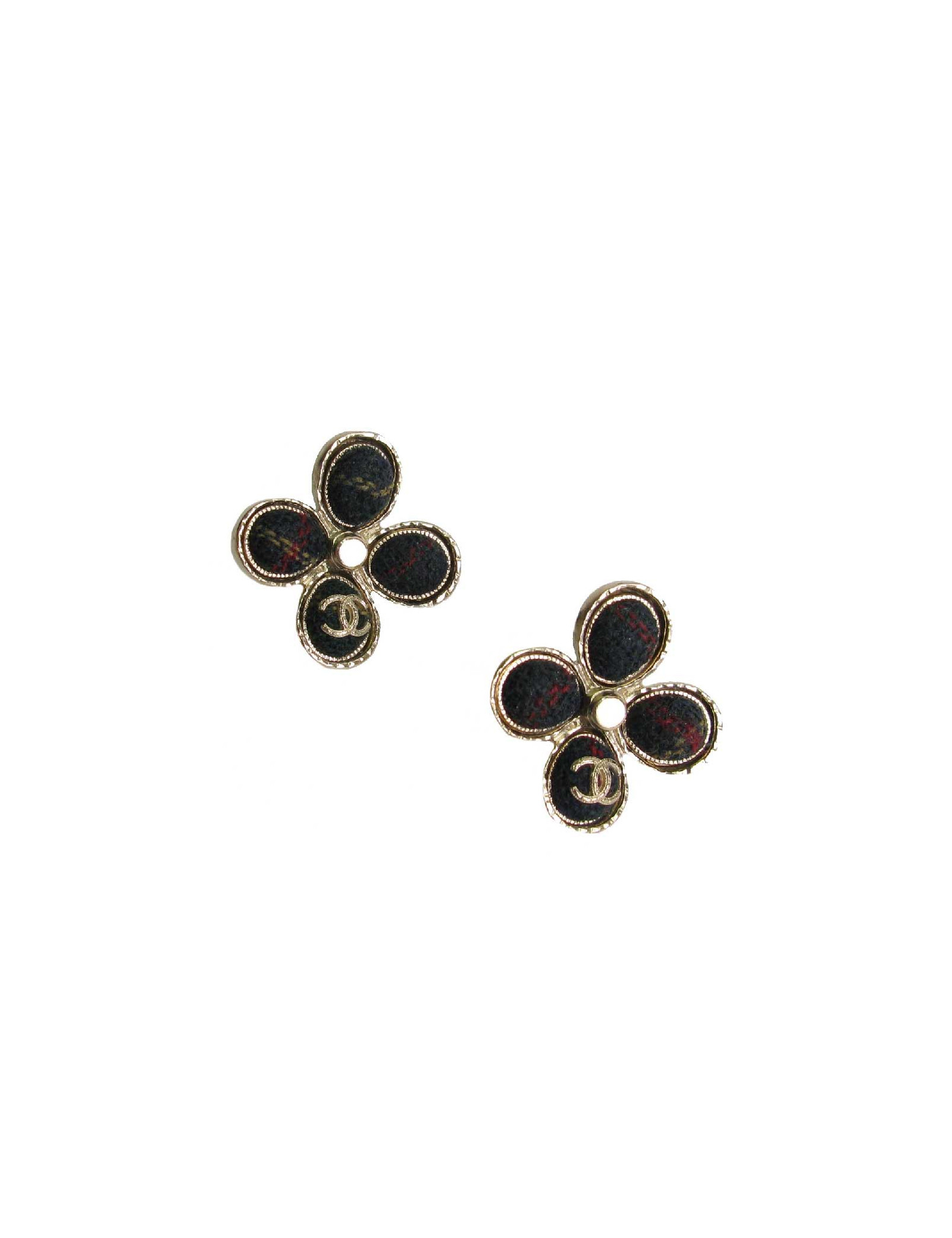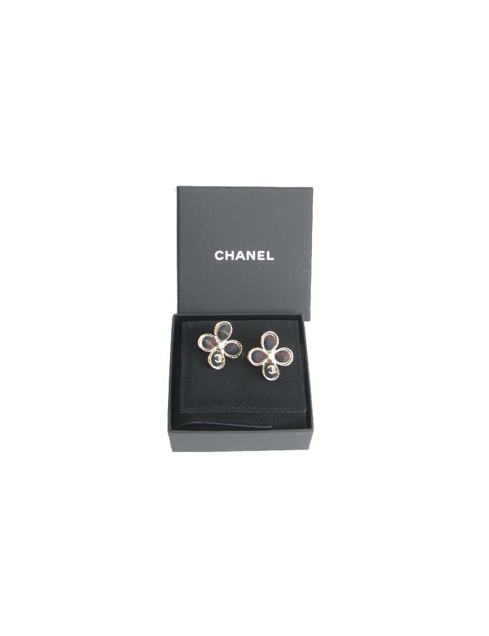 CHANEL clover stud earrings 'Paris Edinburgh' in gilt metal and multicolored tweed