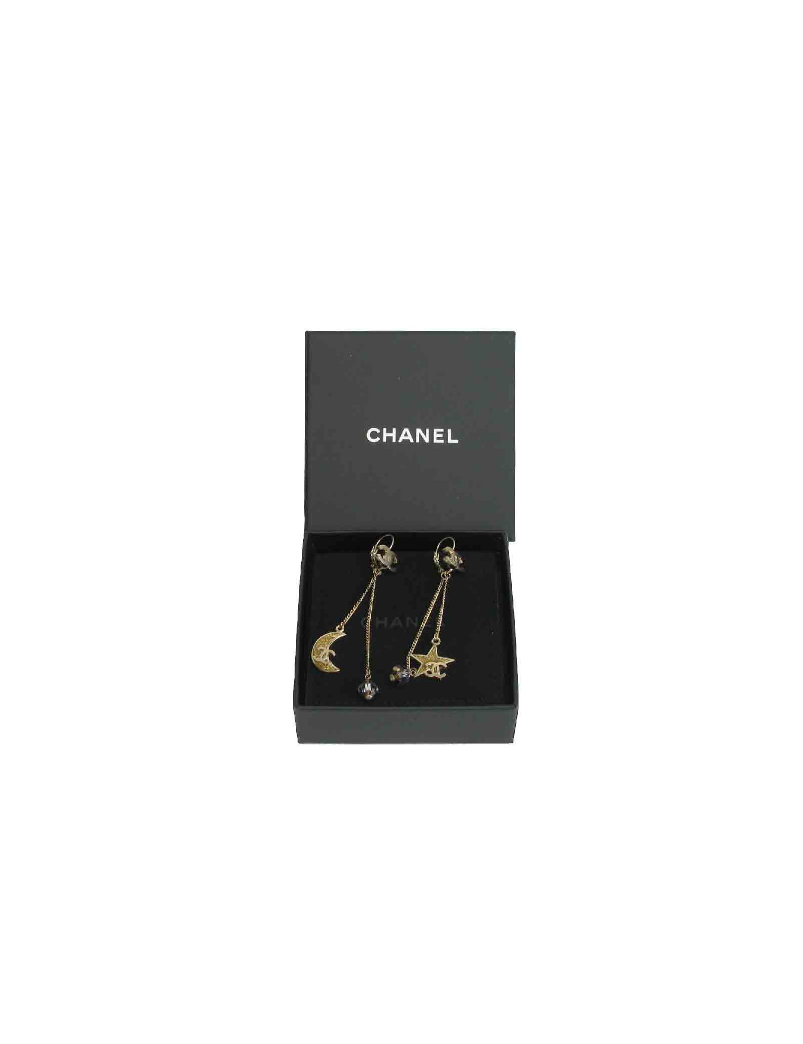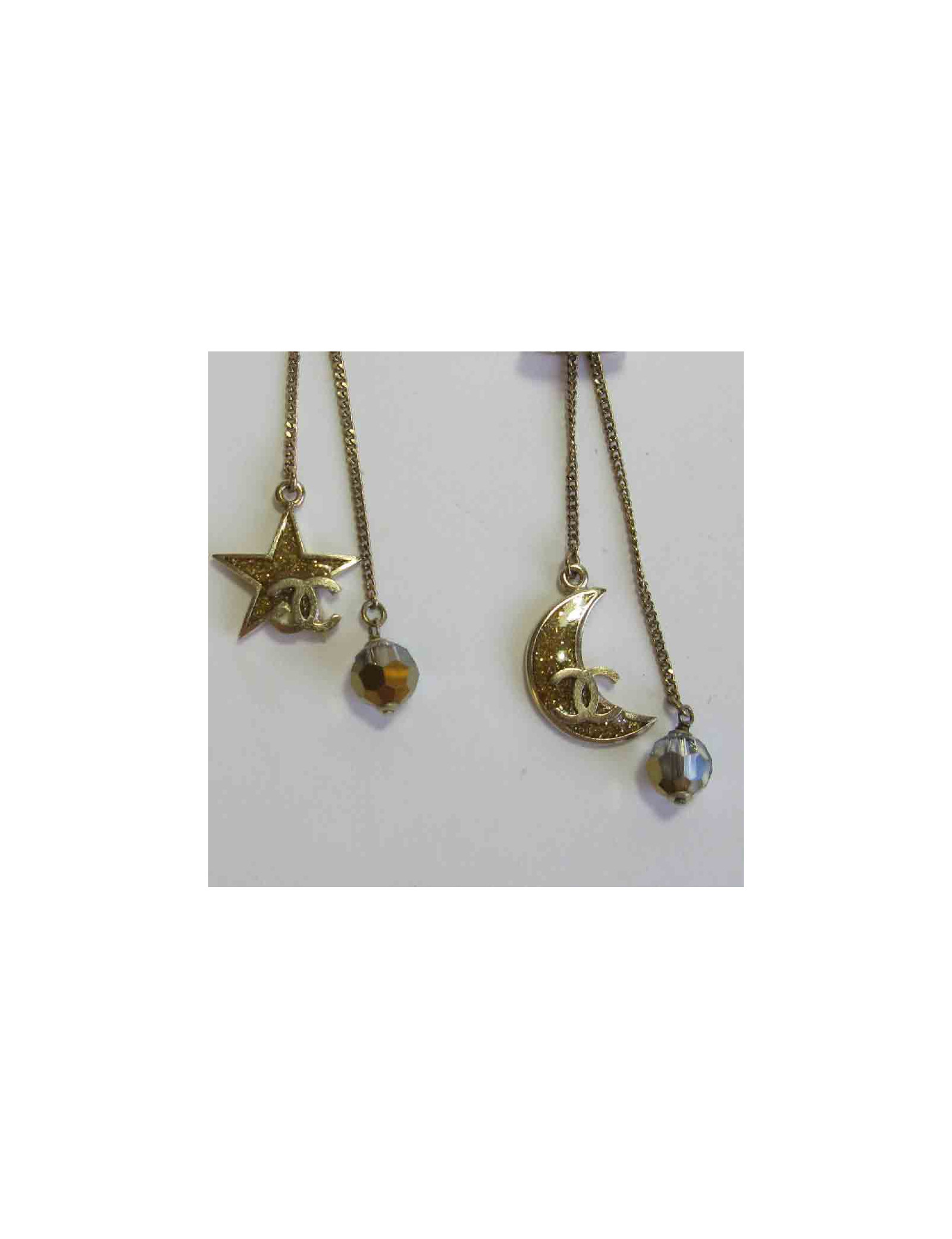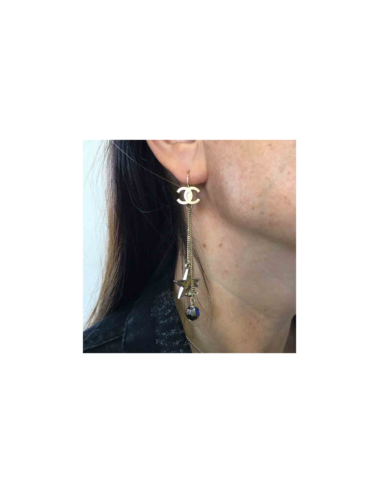 Sold EARRINGS CHANEL earrings for black clover CHANEL 13208 205.00 € CHANEL earrings pendants black clover. It consists of a clover in black resin and an acronym cc gold metal and black resin. There is a double chain. The first measure 3.5 cm and 2 cm in the second. They are delivered in a nice pouch. View
