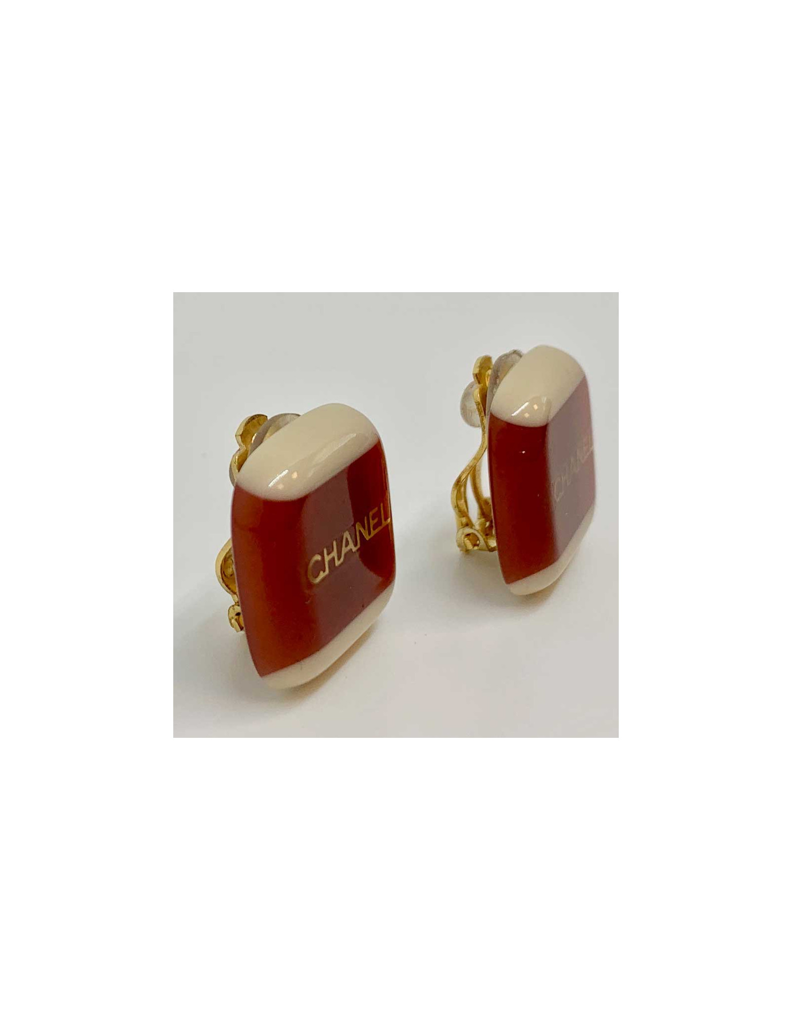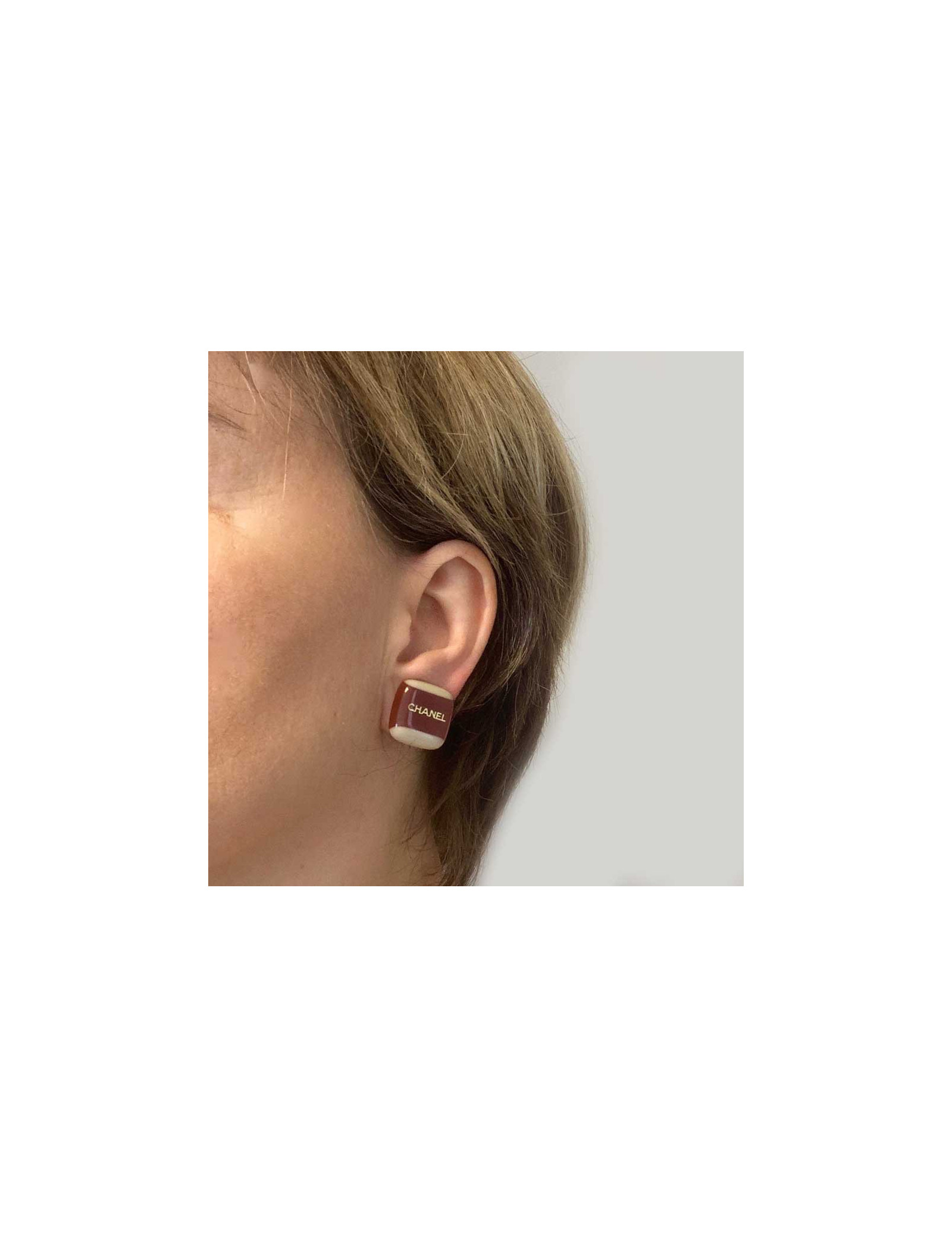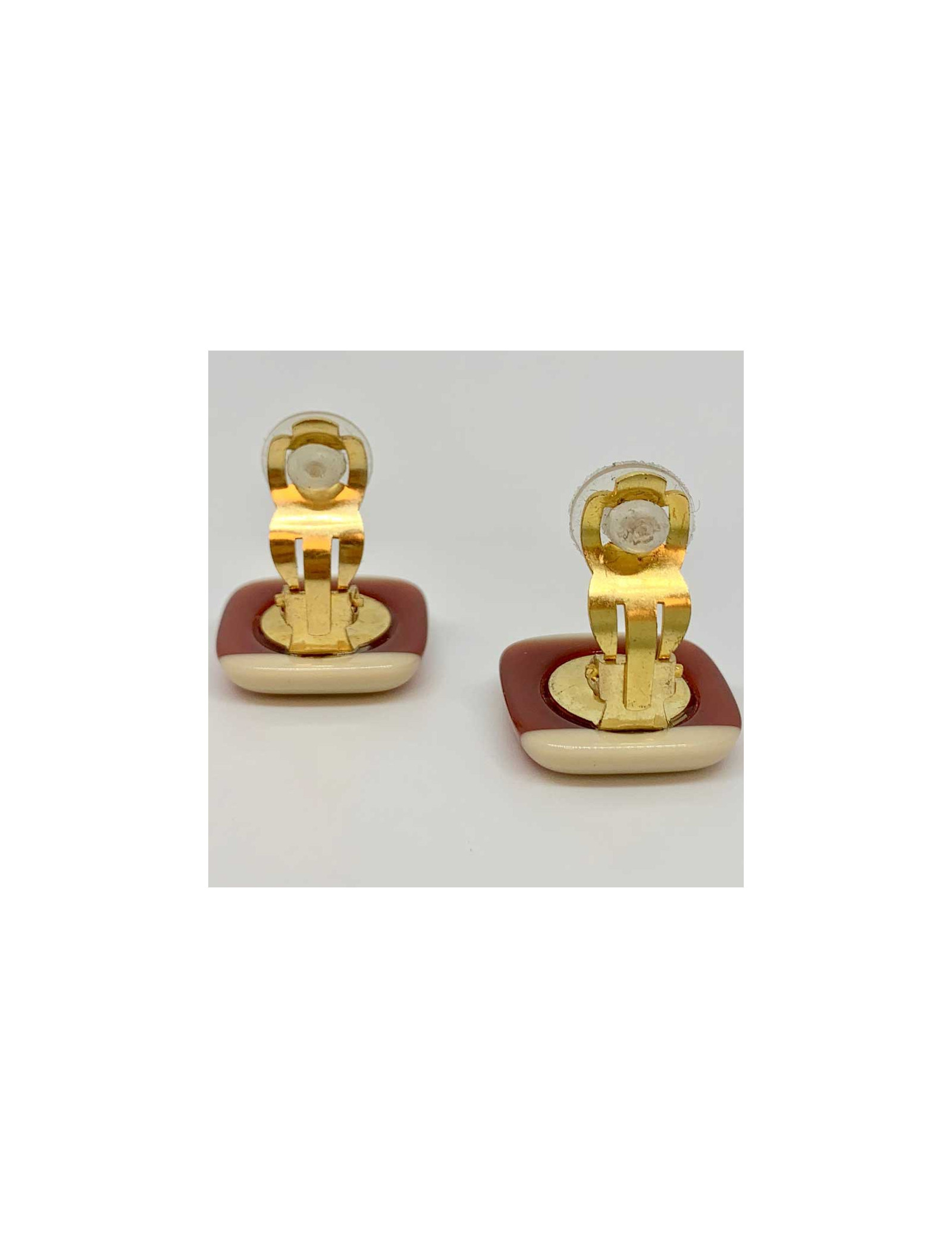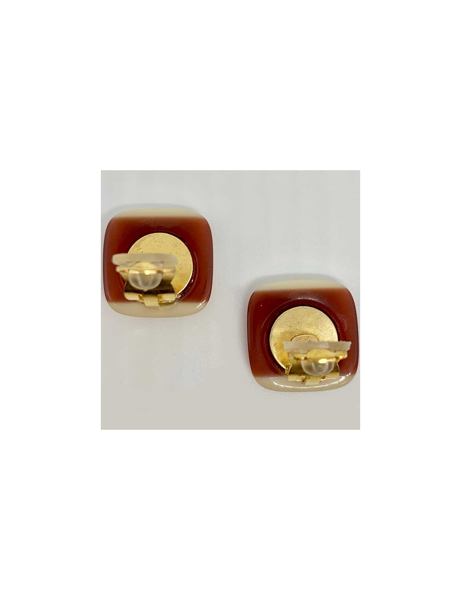 Last items in stock EARRINGS CHANEL vintage brown resin clip-on earrings CHANEL 25448 490.00 € CHANEL vintage couture brown clip-on earrings Condition : very goodMade in FranceMaterials : resin, metalColors : brownModel : clip-on earringsMeasurements : diameter 2 cmHardware : gold plated metalStamp : yesYear : 1986Details : iridescent brown resin cabochon Add to cart