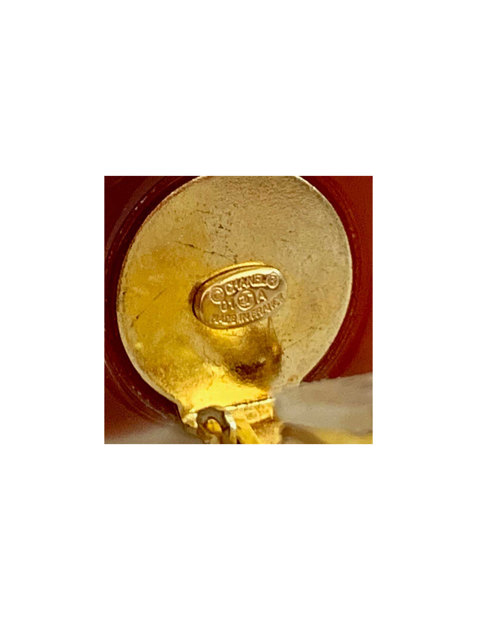 Last items in stock EARRINGS CHANEL Vintage round gilded clip-on earrings CHANEL 31561 1,290.00 € CHANEL Vintage round gilded clip-on earrings Condition: very goodMaterial : metal Color : goldStamp : noYear : 1988-1989Measurements : 3.5 x 3.5 cm Add to cart