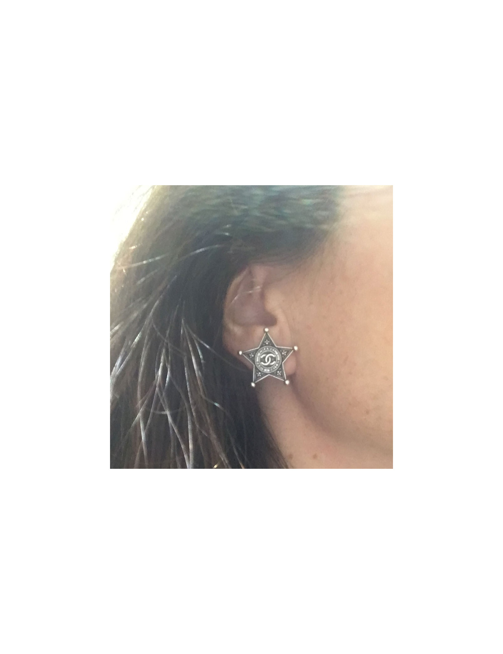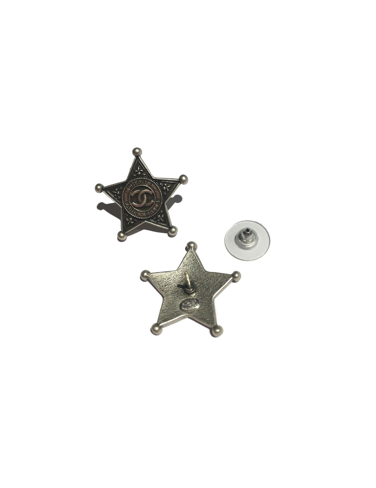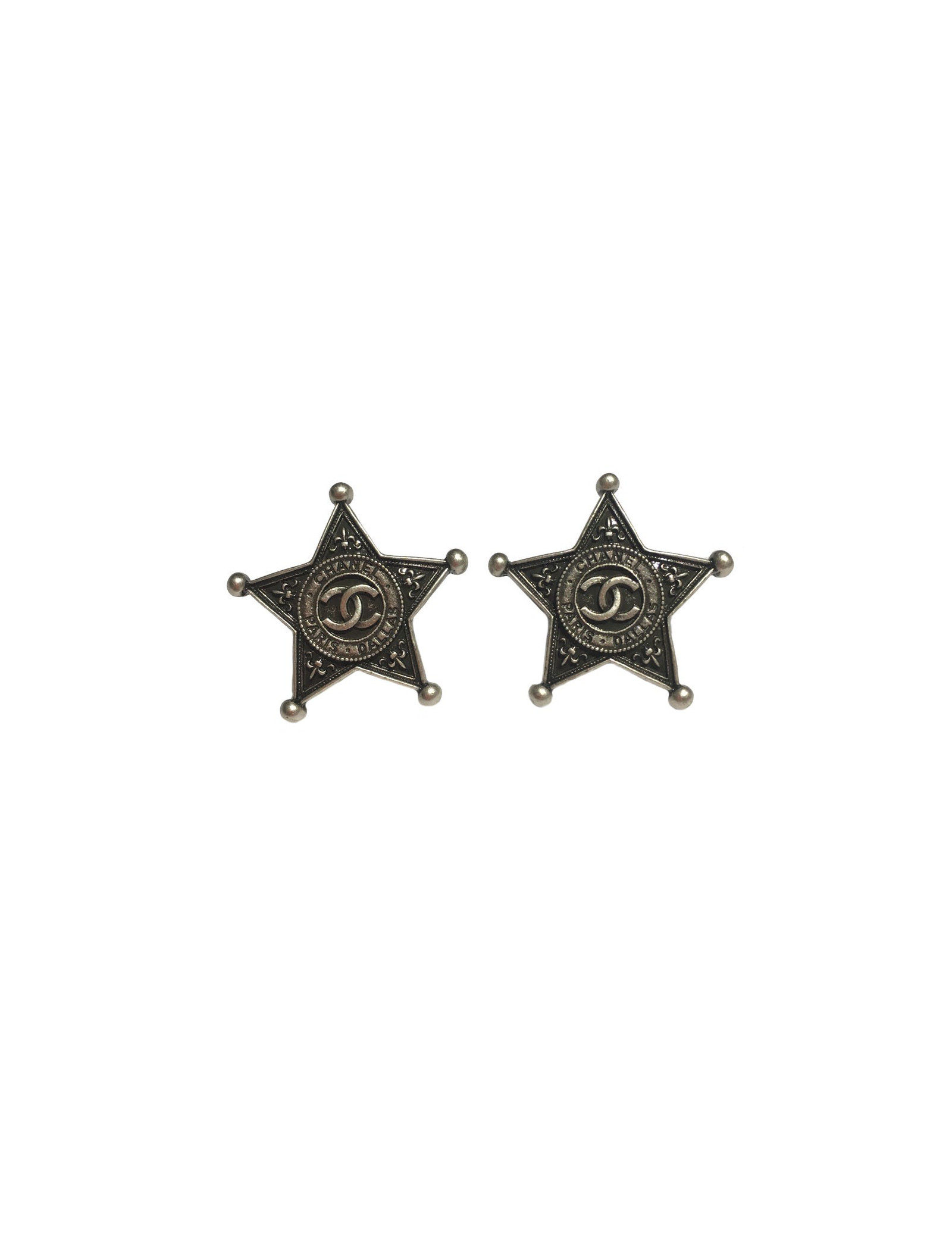 Boucles d'oreille clous d'oreilles CHANEL "Paris-Dallas" en métal argenté