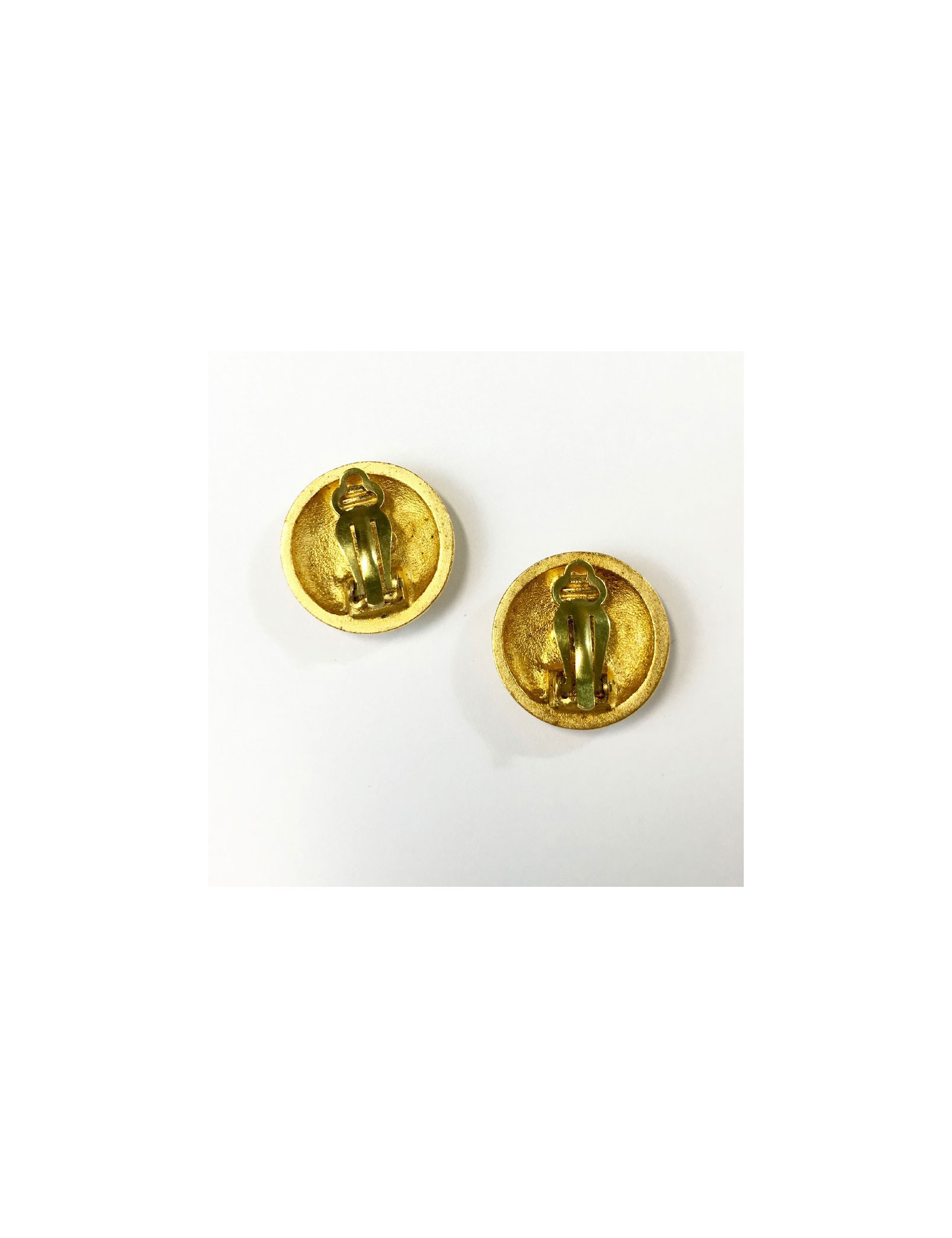Last items in stock EARRINGS CHANEL vintage 1980 gilded circular clip-on earrings CHANEL 32454 990.00 € CHANEL vintage 1980 gilded circular clip-on earrings Condition: very goodMade in FranceModel : broochColor : light goldMaterial : gold plated metalMeasurements : 2,8 x 3,1 cmStamp : yesYear: 1980 Add to cart