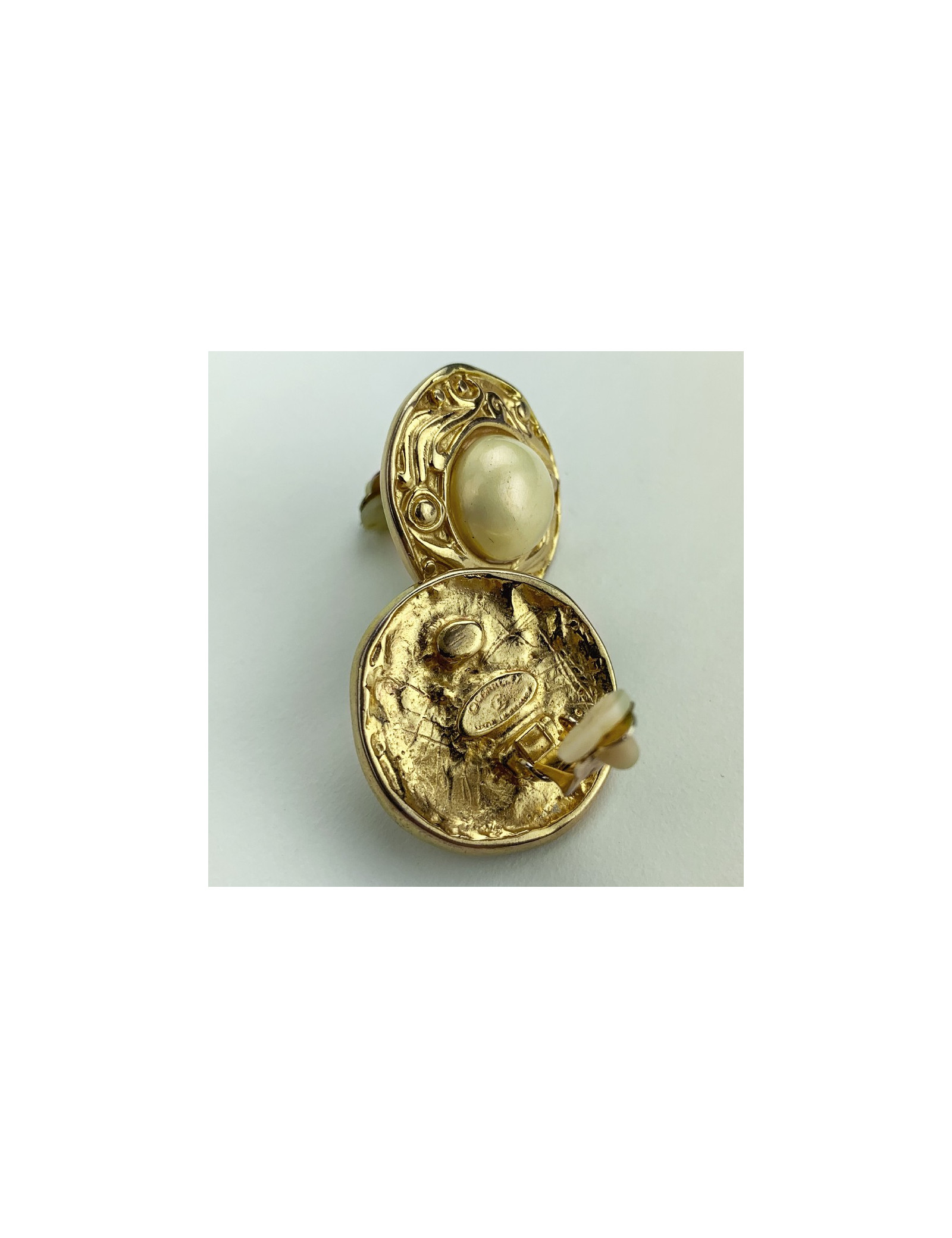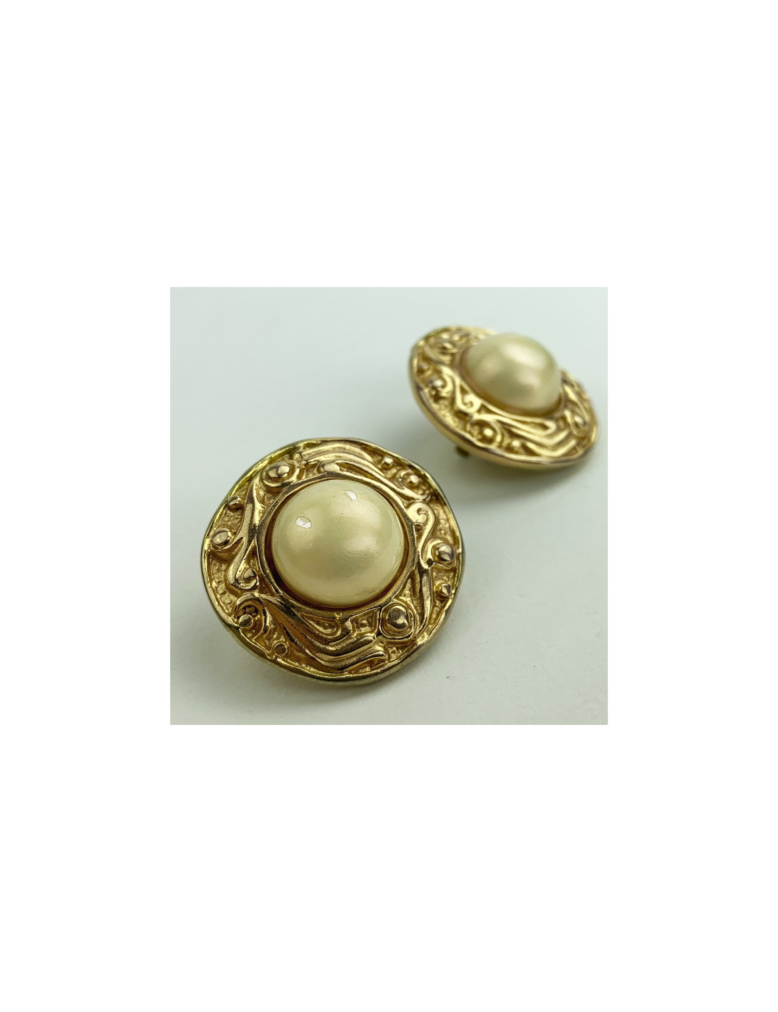 Last items in stock EARRINGS CHANEL gilded clip-on earrings CHANEL 25176 1,190.00 € CHANEL gilded clip-on earrings Materials: metal, pearly beadsColors : gold, mother-of-pearlCondition: never wornS from the salesMeasurements : 3,6x3,2 cmVintage jewel Advantage Valois Vintage Paris : come in their CHANEL box Add to cart