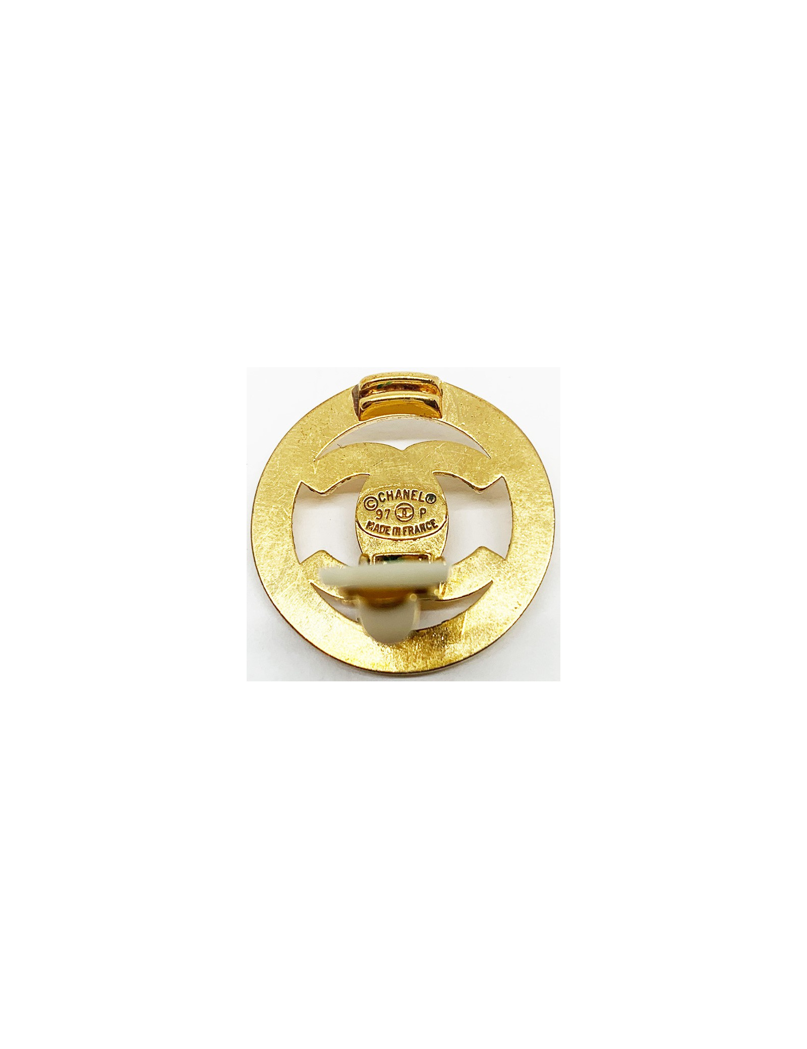Last items in stock EARRINGS CHANEL vintage collector big clip-on earrings CHANEL 36409 6,100.00 € CHANEL vintage collector big clip-on earrings Condition : goodMade in FranceMaterials: pearly beads, metalColors : gold, mothe-of-pearlMeasurements : clip : 2.2 x 2.2 cm CC pendant : 6 x 6 cmTotal length : 10,2cmHardware :gold finish metalStamp : yesYear: 1970'sDetails : Pearly bead clips, one of the beads is slightly damaged which is why we put them in... Add to cart