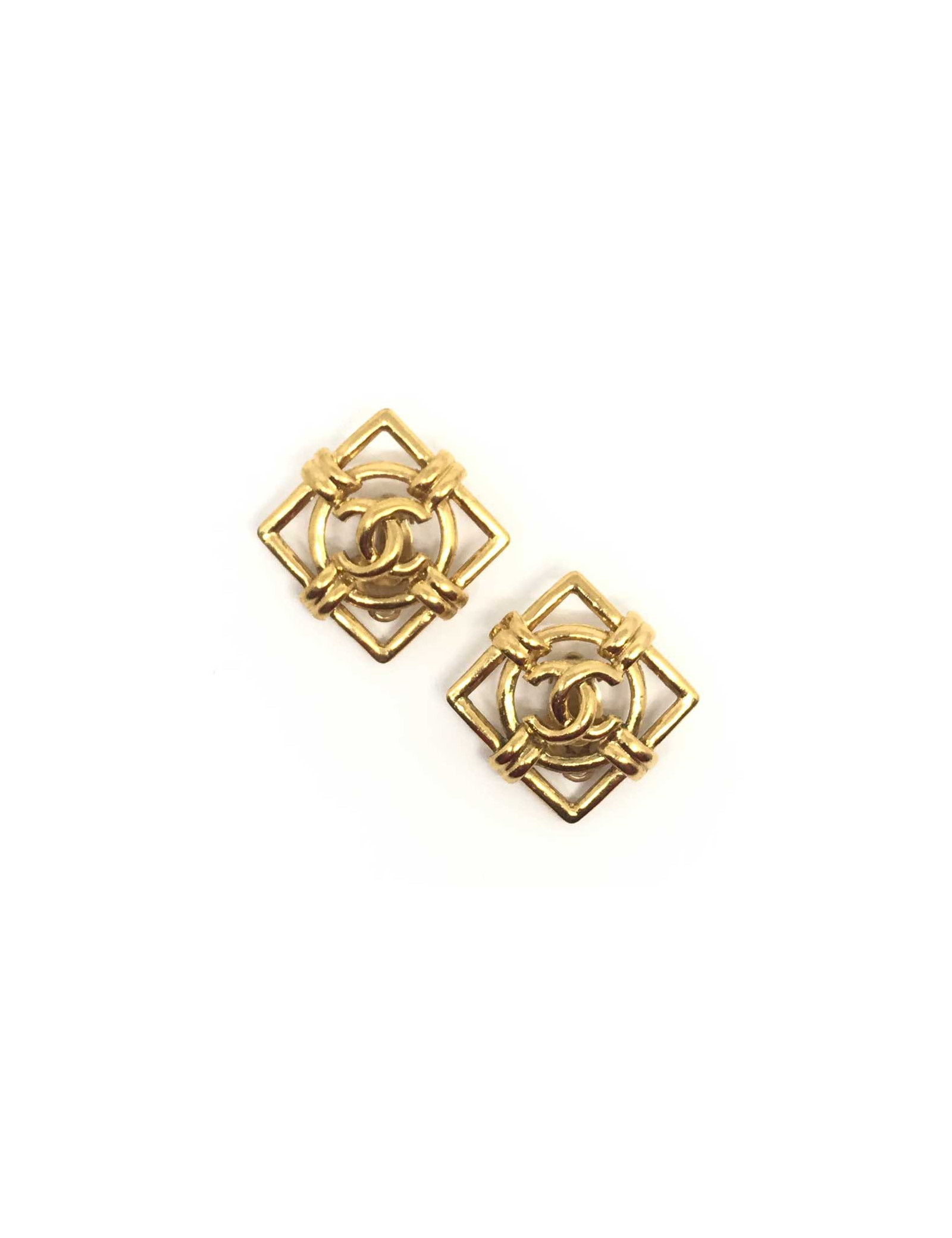 Last items in stock EARRINGS CHANEL vintage circular gilded CC clip-on earrings CHANEL 34200 1,260.00 € CHANEL vintage circular gilded CC clip-on earrings Condition : very goodMade in FranceMaterial : 24k gold plated metalColor : goldMeasurements : diameter 3cmHardware : goldStamp : yesYear: Fall 1994Details : Circular gilded CC earrings. Advantage Valois Vintage Paris : come in their original Chanel box Add to cart