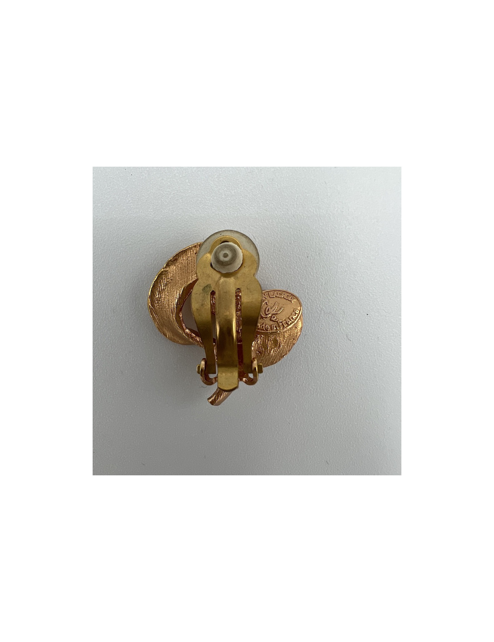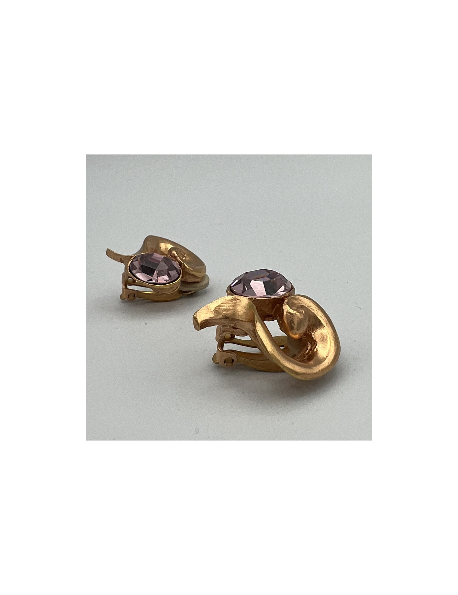 Last items in stock EARRINGS GOOSSENS vintage transparent and amethyst clip-on earrings GOOSSENS 31031 380.00 € GOOSSENS vintage transparent and amethyst clip-on earrings Condition: very goodMade in FranceMaterials: plexiglass and rock crystalColors: light amethyst transparent, goldMeasurements : 3 x 2,5 cmVintageDetails: These jewels were made in the workshops at the time of Mr. Robert Goossens. The company now belongs to Chanel. Add to cart