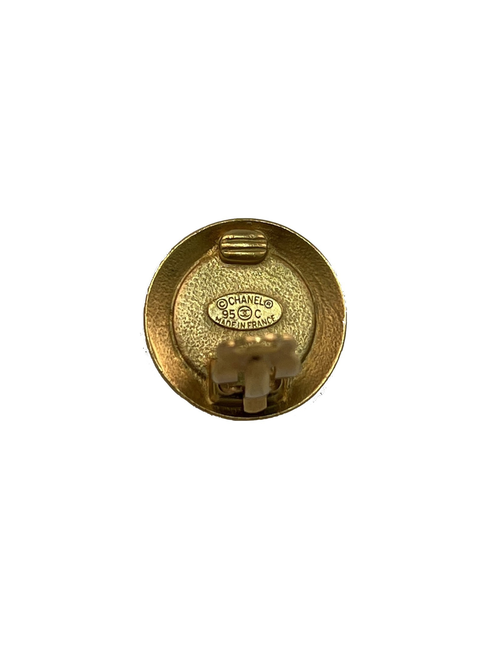 Last items in stock EARRINGS CHANEL vintage circular gilded CC clip-on earrings CHANEL 34200 1,260.00 € CHANEL vintage circular gilded CC clip-on earrings Condition : very goodMade in FranceMaterial : 24k gold plated metalColor : goldMeasurements : diameter 3cmHardware : goldStamp : yesYear: Fall 1994Details : Circular gilded CC earrings. Advantage Valois Vintage Paris : come in their original Chanel box Add to cart
