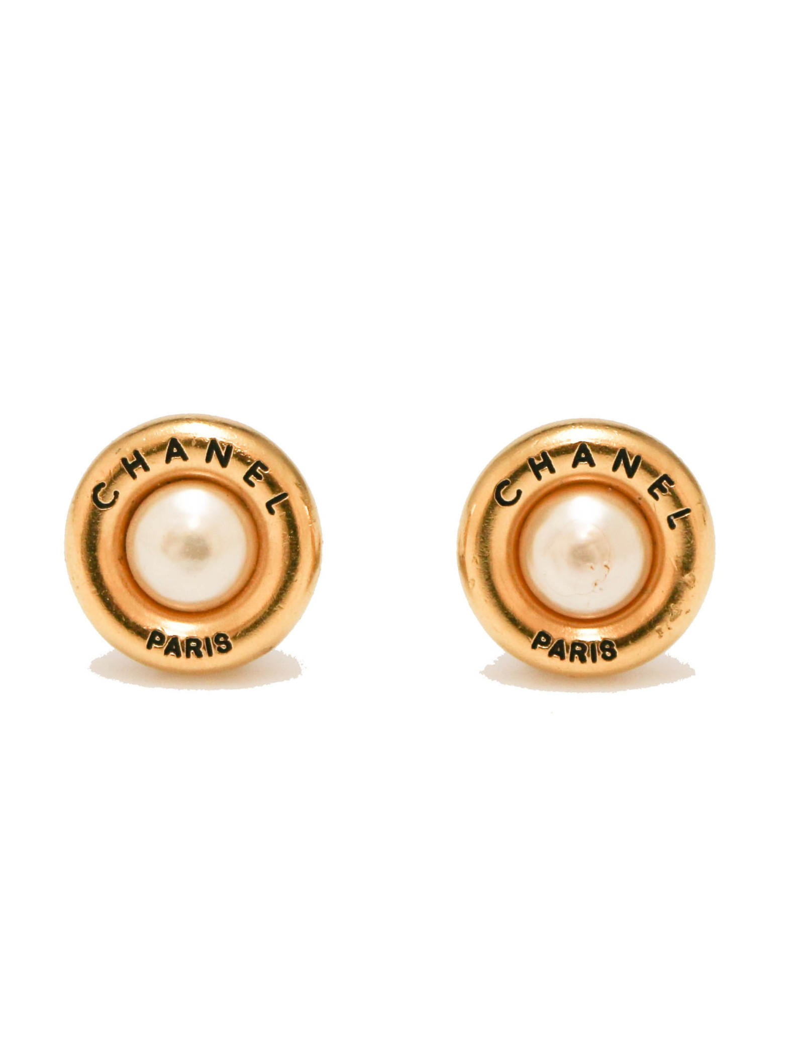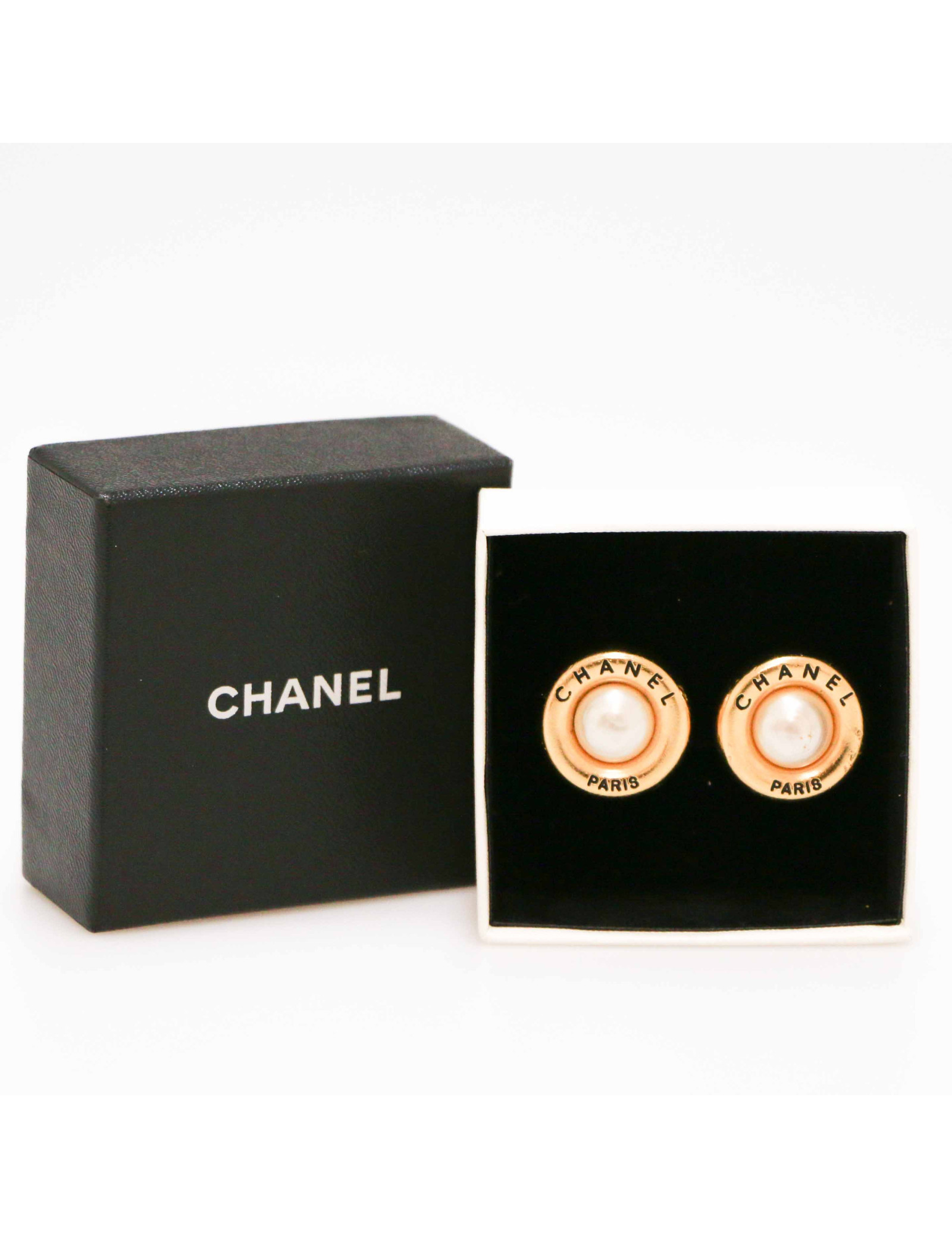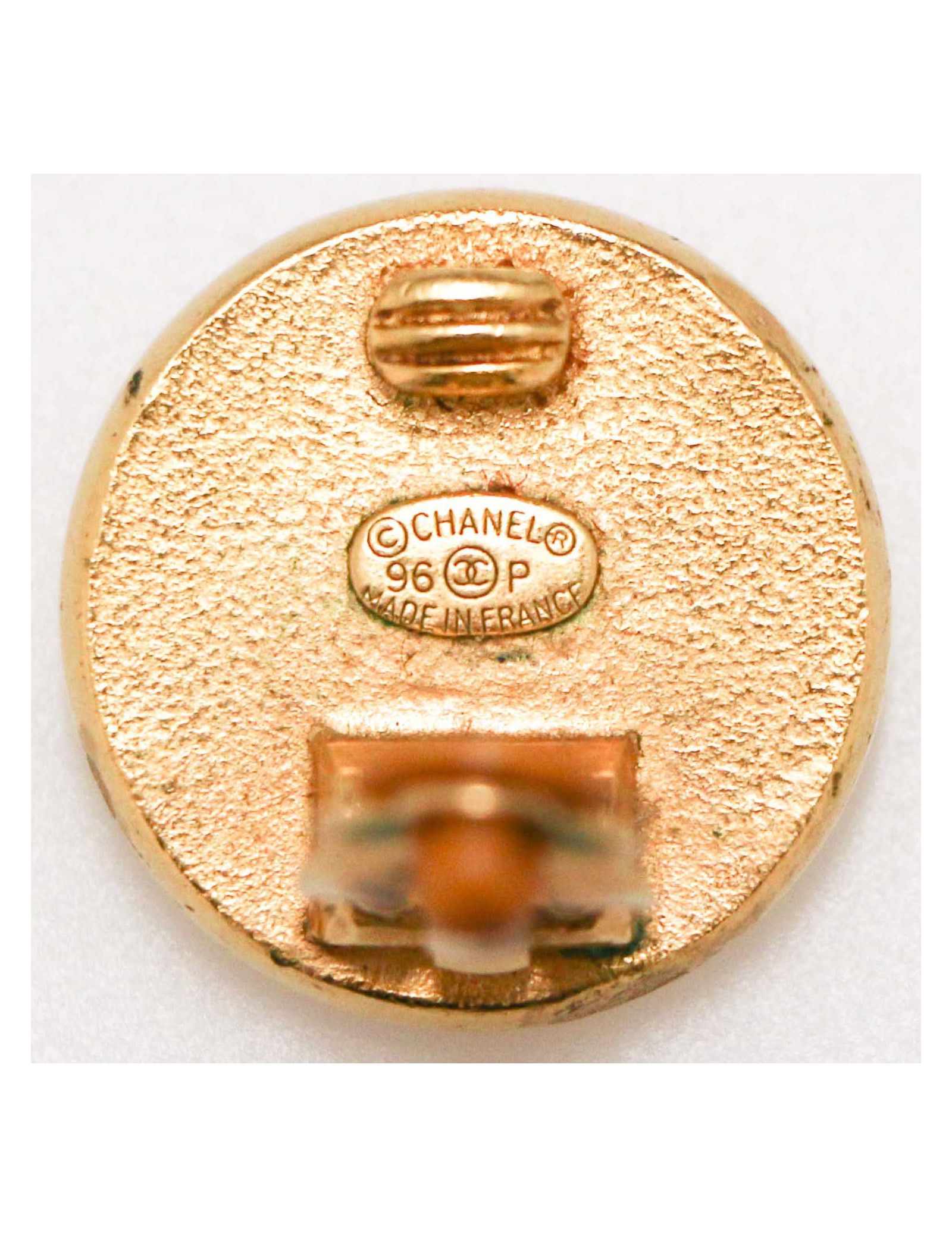 Last items in stock EARRINGS CHANEL Vintage round gilded clip-on earrings CHANEL 31561 1,290.00 € CHANEL Vintage round gilded clip-on earrings Condition: very goodMaterial : metal Color : goldStamp : noYear : 1988-1989Measurements : 3.5 x 3.5 cm Add to cart