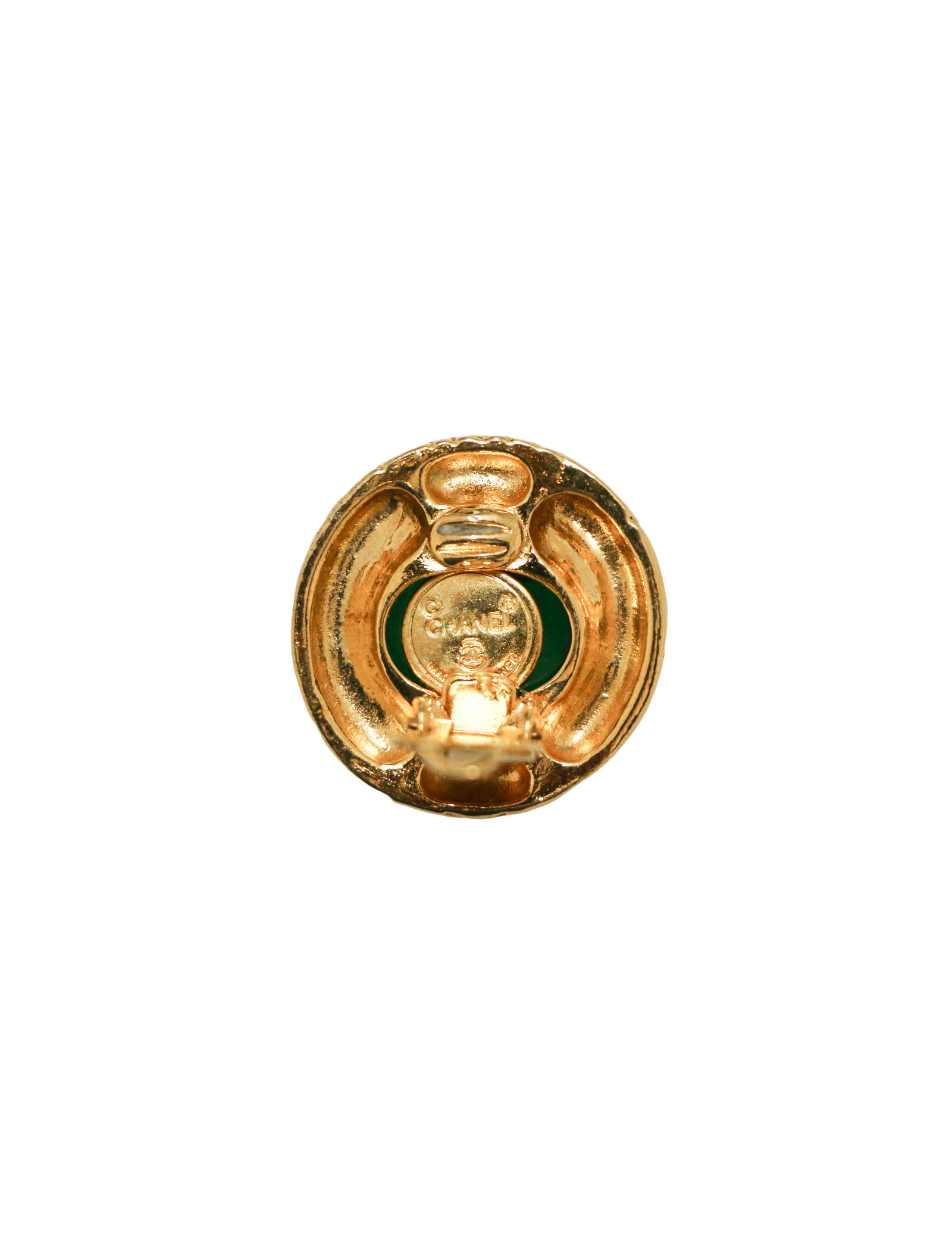Last items in stock EARRINGS CHANEL Vintage round gilded clip-on earrings CHANEL 31561 1,290.00 € CHANEL Vintage round gilded clip-on earrings Condition: very goodMaterial : metal Color : goldStamp : noYear : 1988-1989Measurements : 3.5 x 3.5 cm Add to cart