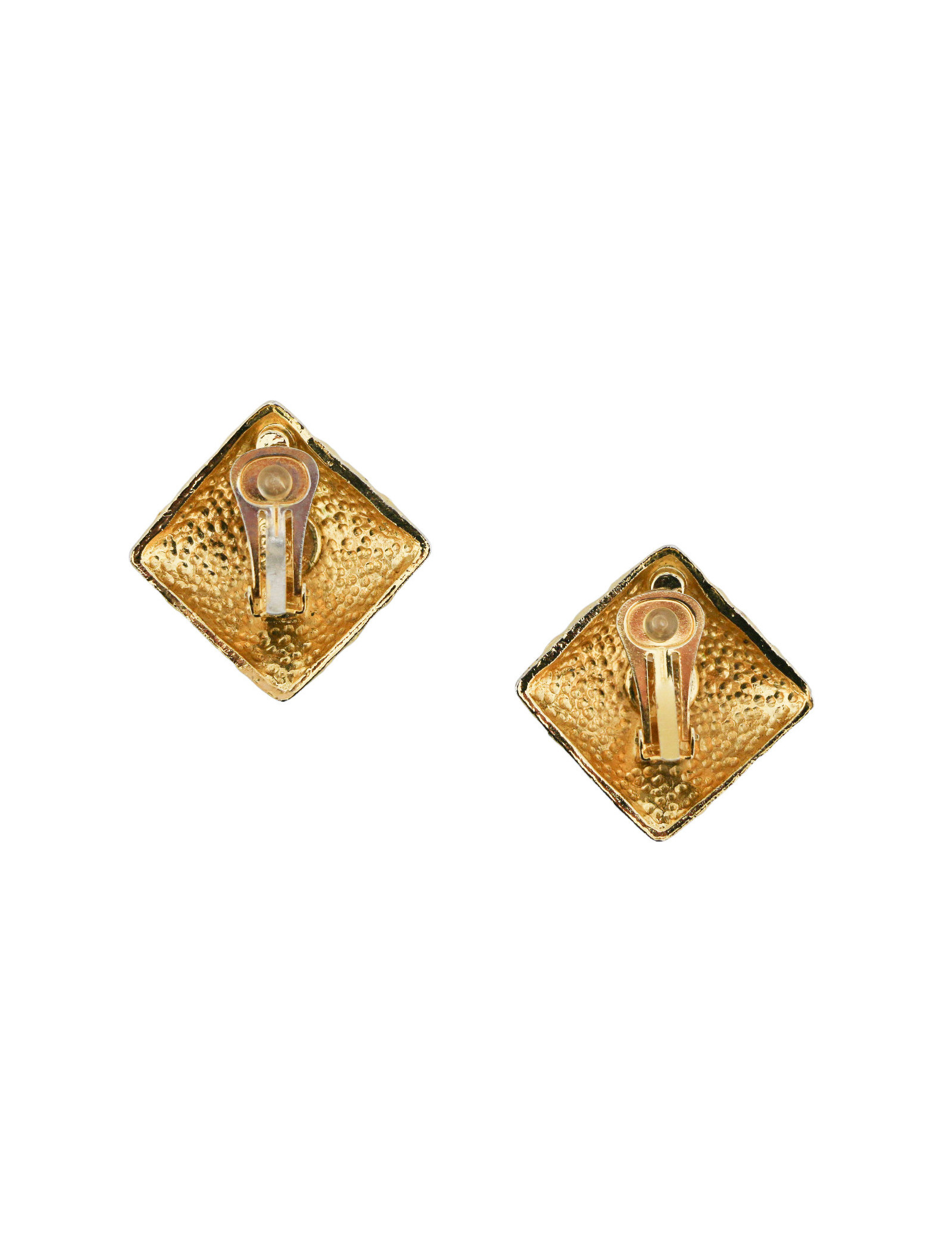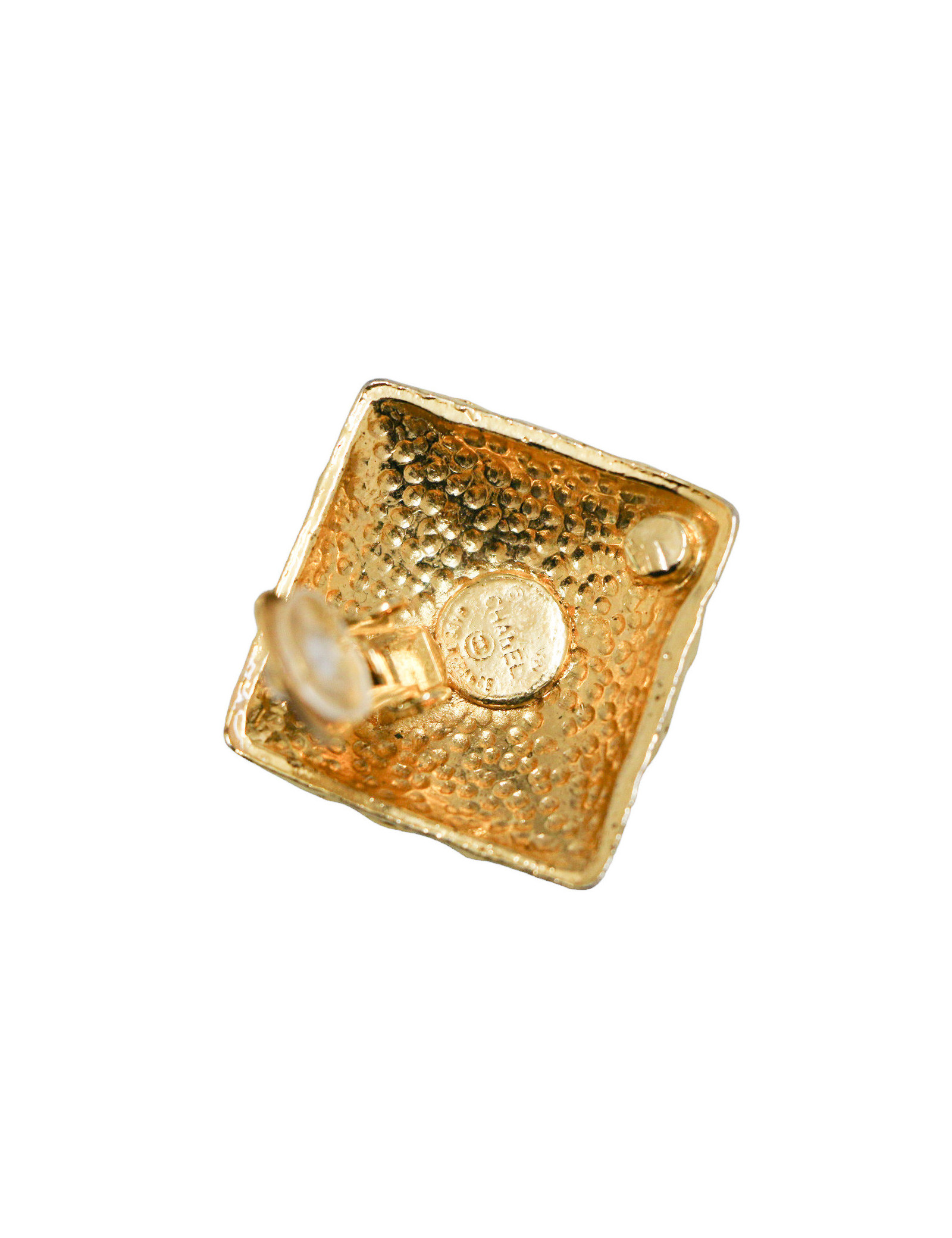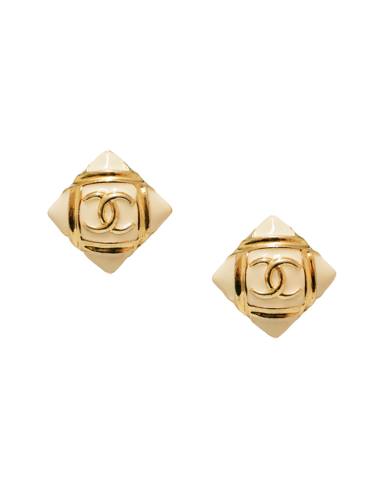 CHANEL vintage ivory enamel square couture clip-on earrings