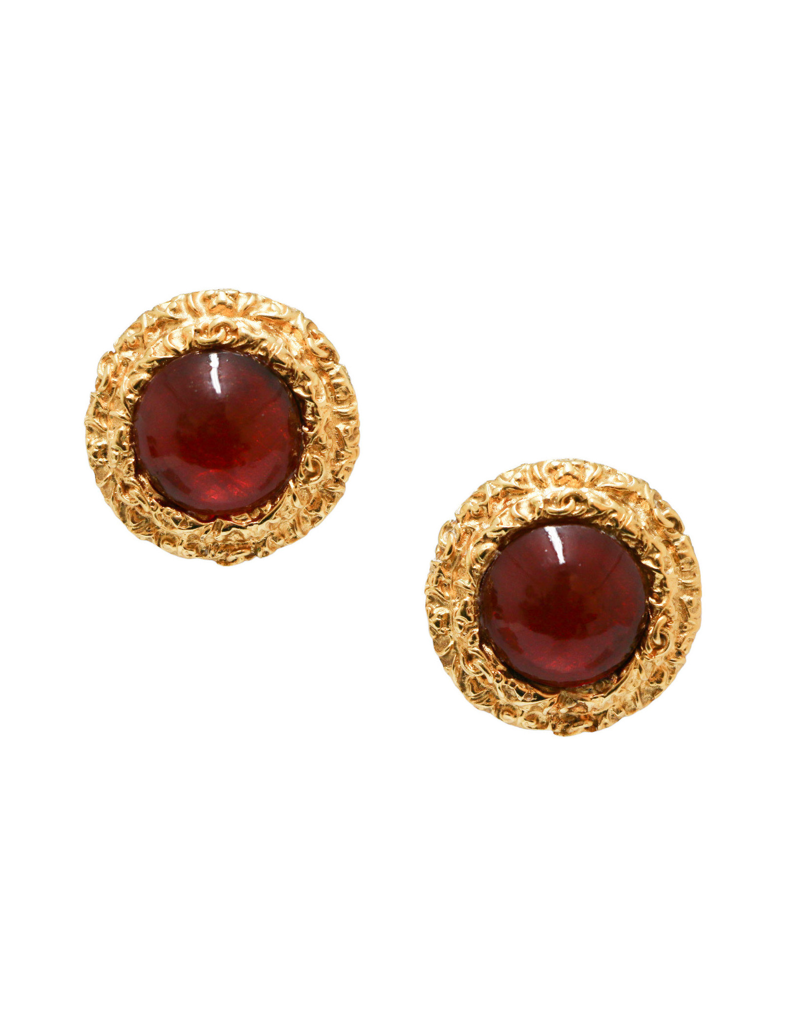 CHANEL vintage round ruby red molten glass clip-on earrings