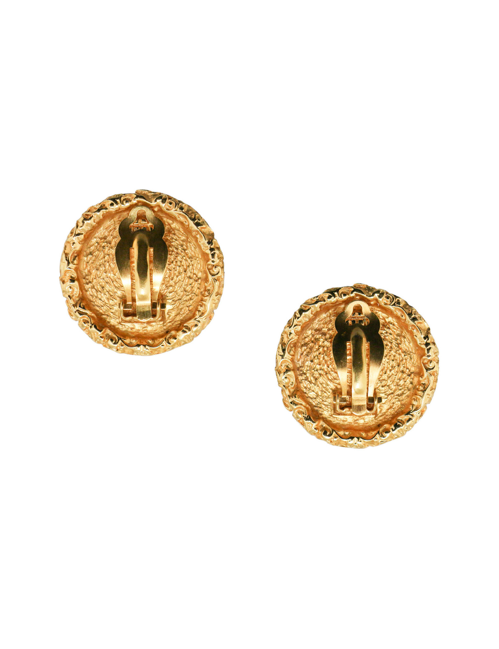 Details : The clip-on earrings are engraved with double c's all around, with a half-pearl in molten glass in the center.