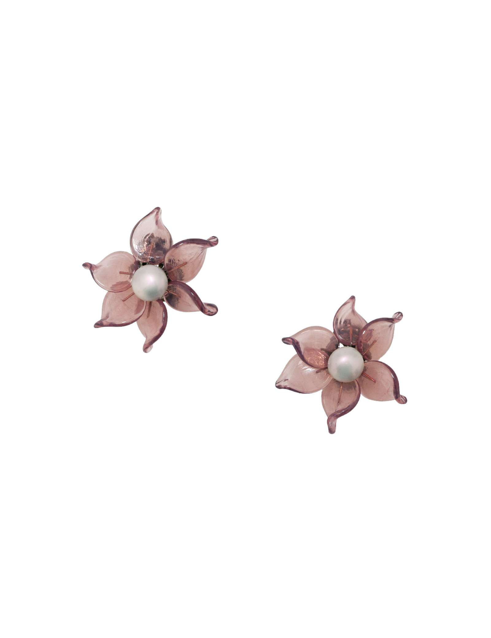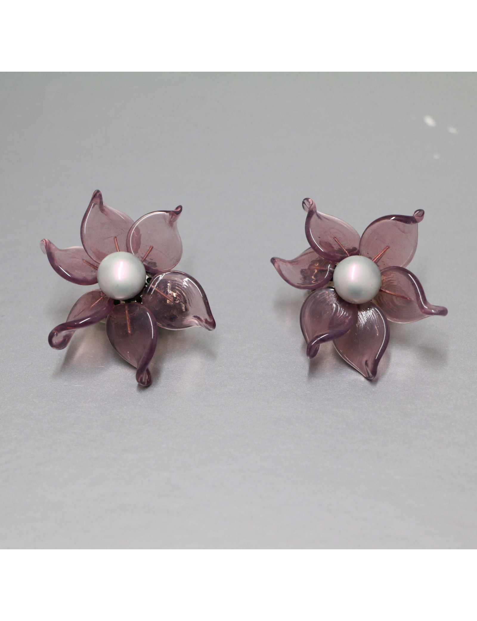Details :one- of-a-kind clip-on earrings made entirely by hand in molten glass
