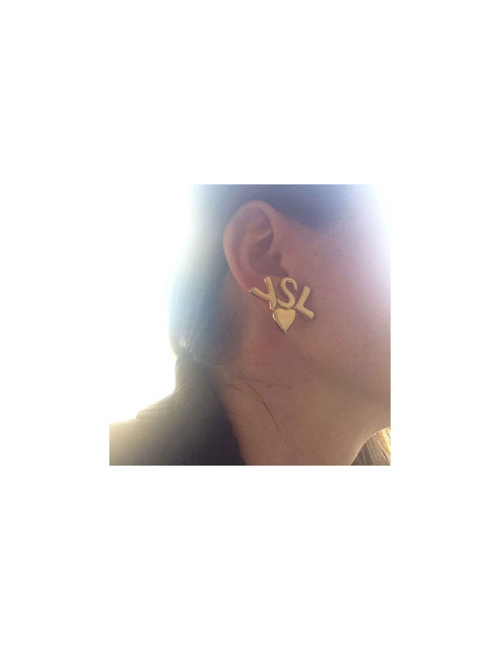 Sold EARRINGS Yves SAINT LAURENT YSL pendant pierced earrings SAINT LAURENT 29341 930.00 € Yves SAINT LAURENT YSL vintage pendant pierced earrings Condition : very goodMade in FranceColors : gold, transparentMaterials : metal, rhinestonesMeasurements : 12 x 9,5 cmDetails : two rhinestones are missing from the left earring (see third photo) View