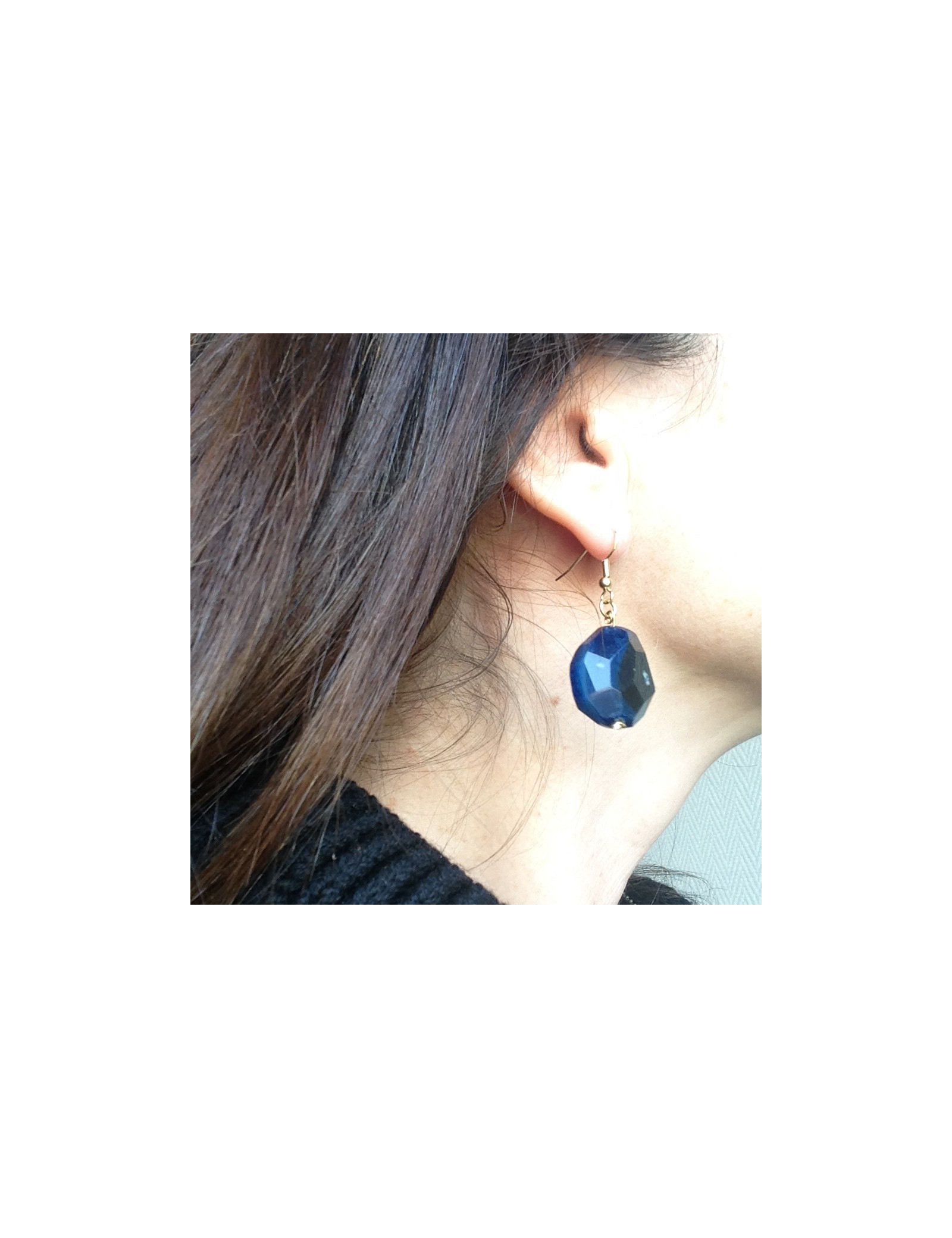 Nice pair of nails of ear in blue agate and rhinestones MARGUERITE of VALOIS, mounted on metal Golden. end never worn.