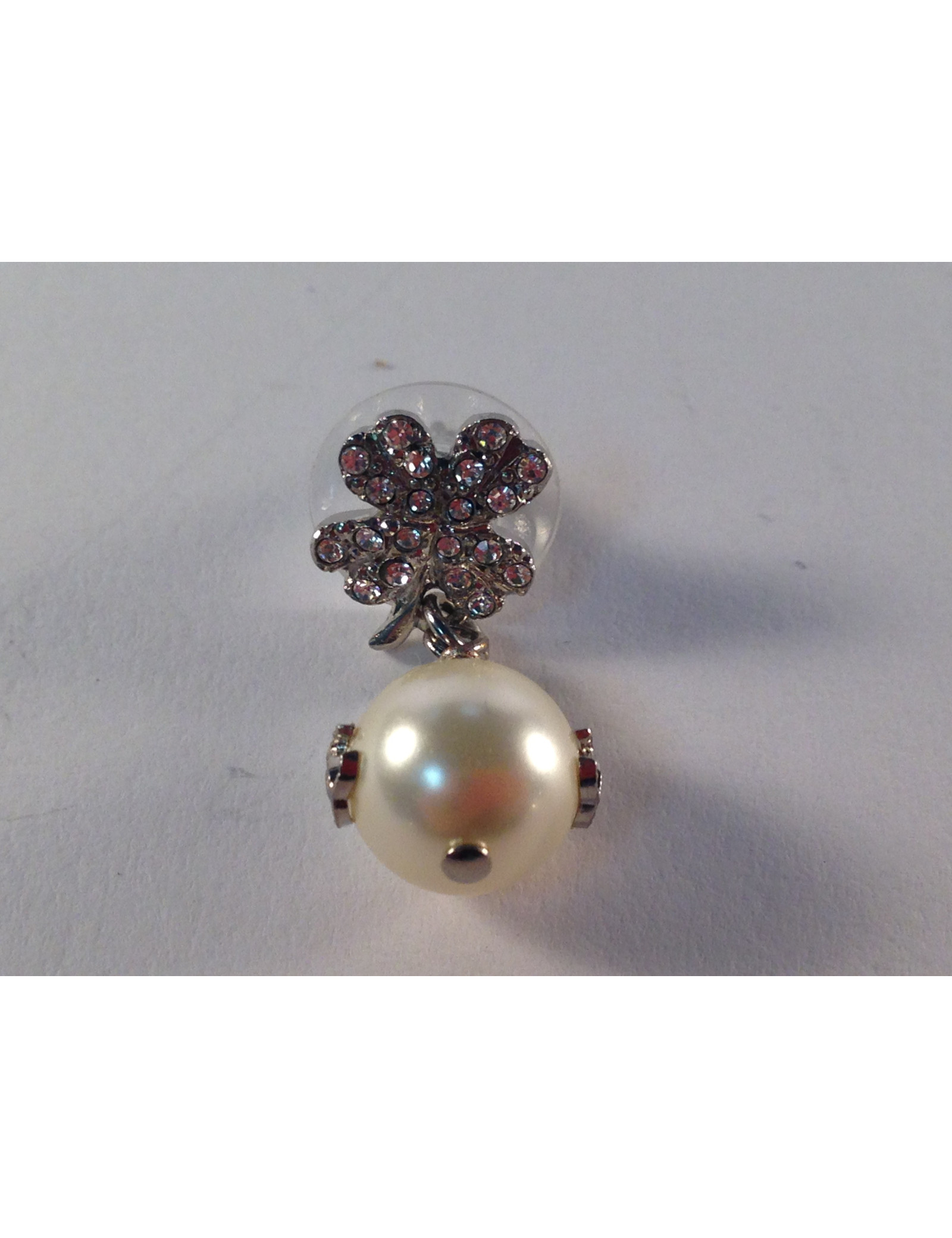 Very nice pair of nails CHANEL earrings dangling: clover in rhinestones and Pearly Pearl topped 2 small "CC". Spring 2015.