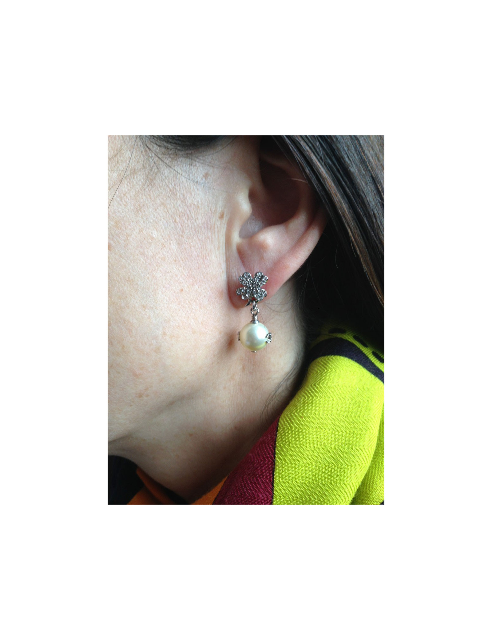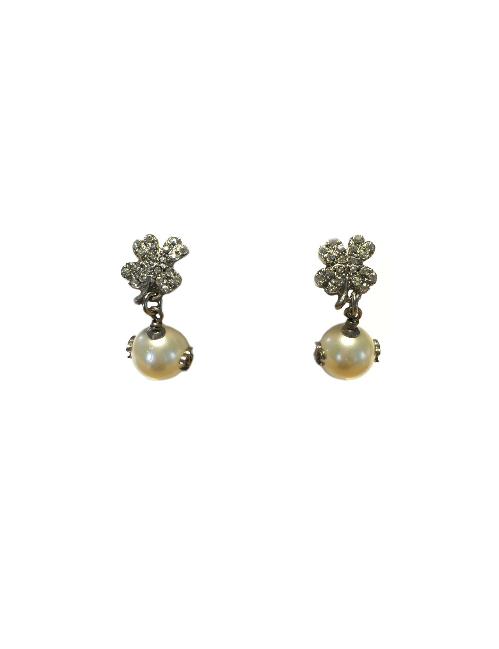 Nails CHANEL rhinestones and Pearly Pearl clover earrings