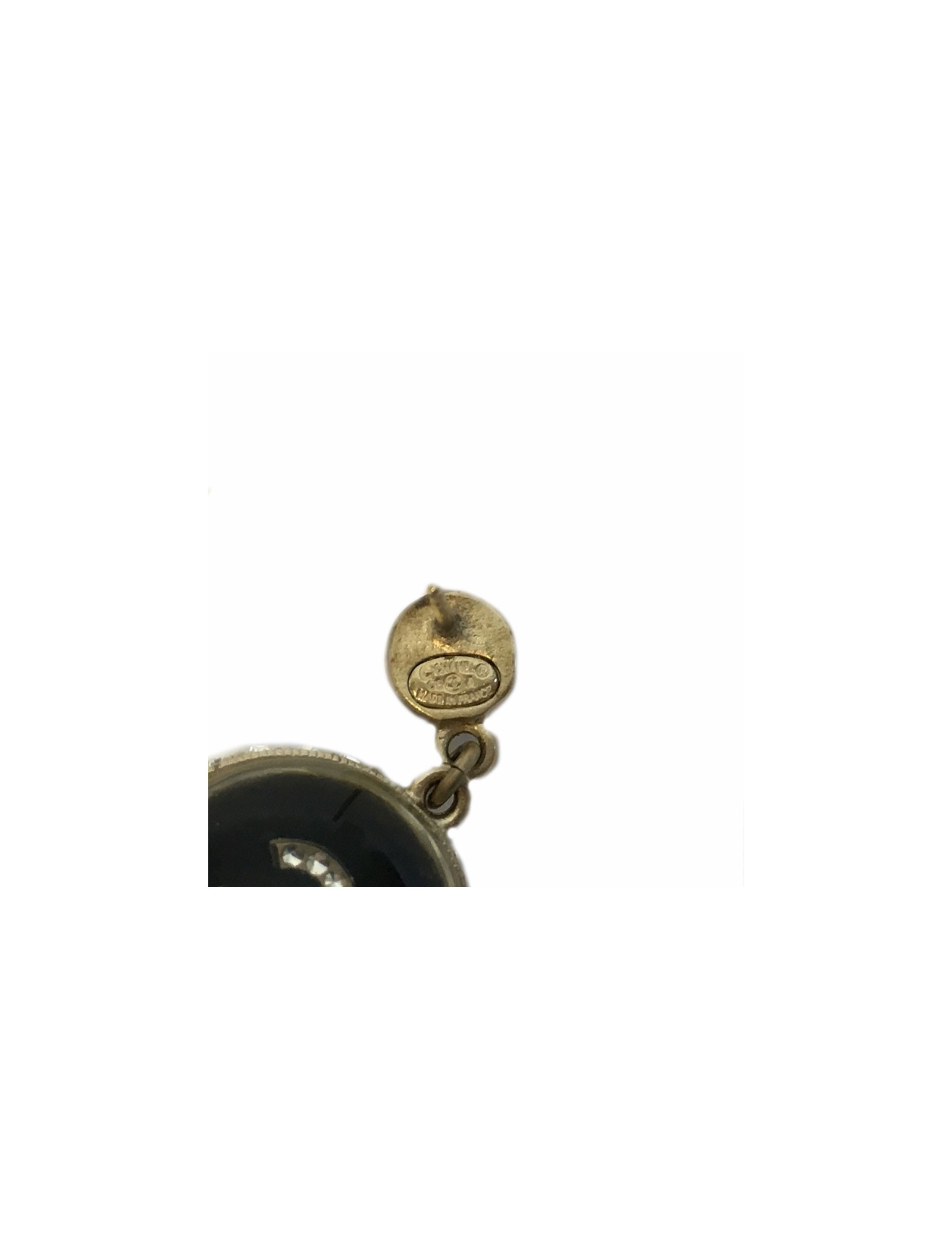 Beautiful! Earrings dangling nails CHANEL of spherical shape. Transparent plexi CC in rhinestone encrusted on black background and metal pale gold. The sphere is surrounded by a row of rhinestones.