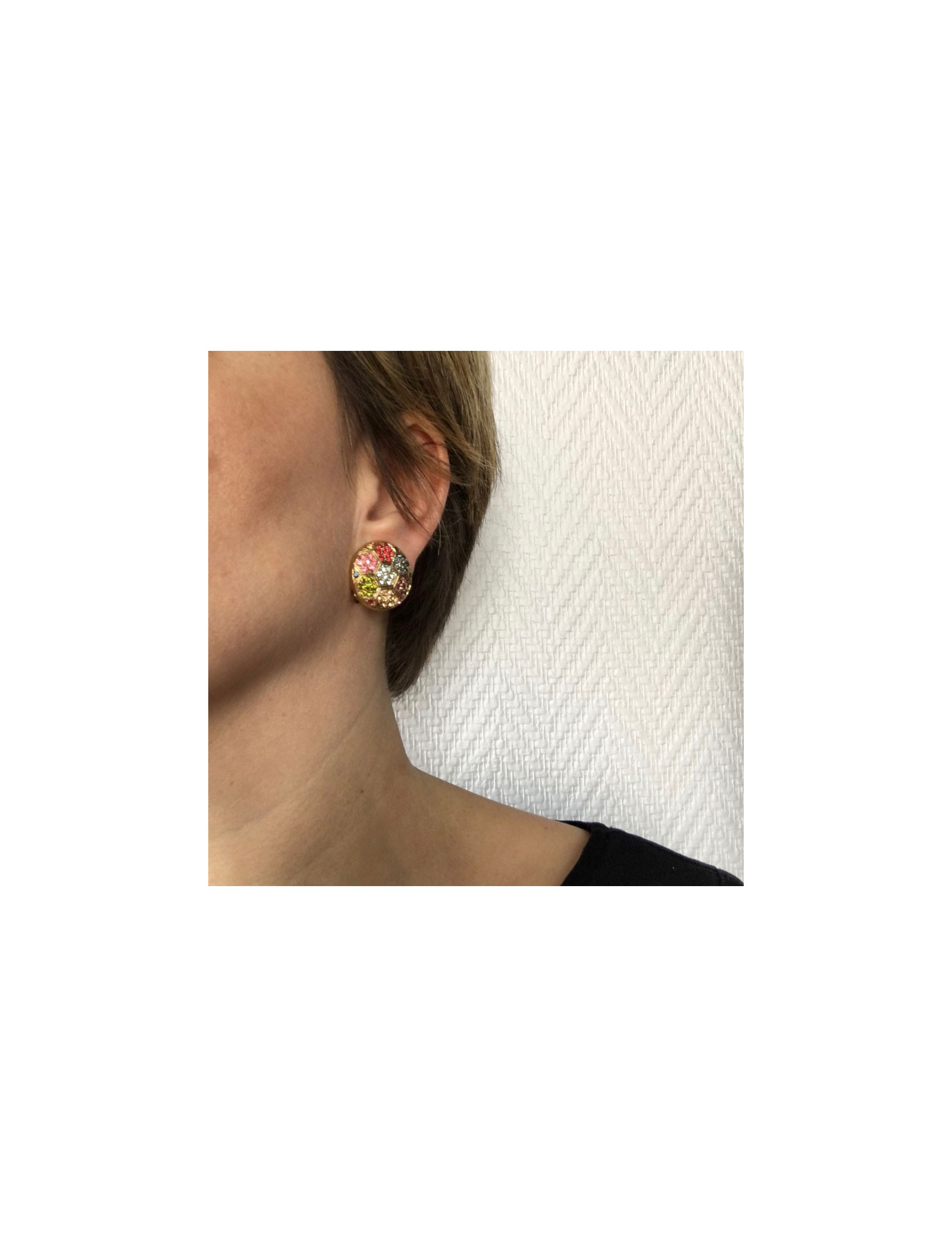 Last items in stock EARRINGS CHANEL Vintage Flower Clips in Gilt Metal CHANEL 28375 3,250.00 € Collector CHANEL flower clips Condition: goodMade in FranceMaterial: gold-plated metal, mother-of-pearlColor: gold, mother-of-pearlDimensions: diameter 6 cmHardware: gold-plated metalStamp: yesYear: 80sDetails : Clip earrings from the 80s, each representing an imposing daisy, with fine-gold petals and a pearly daisy in the heart. A rare collector's item.... Add to cart