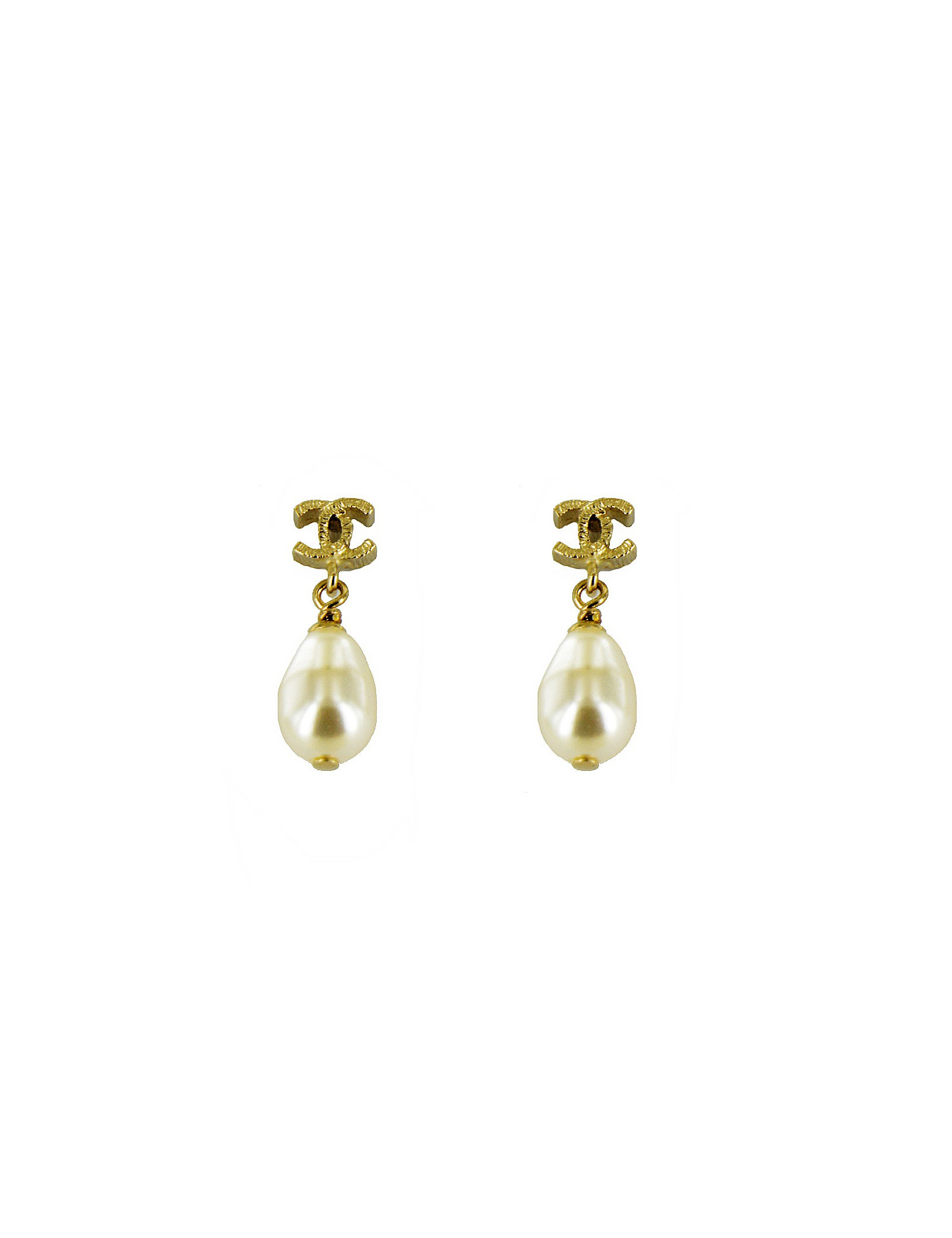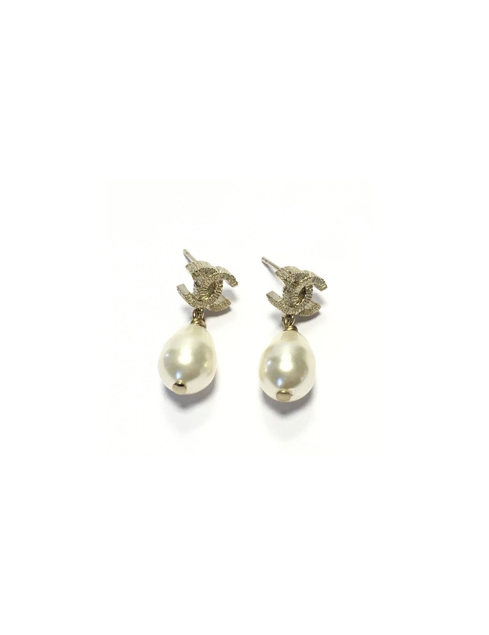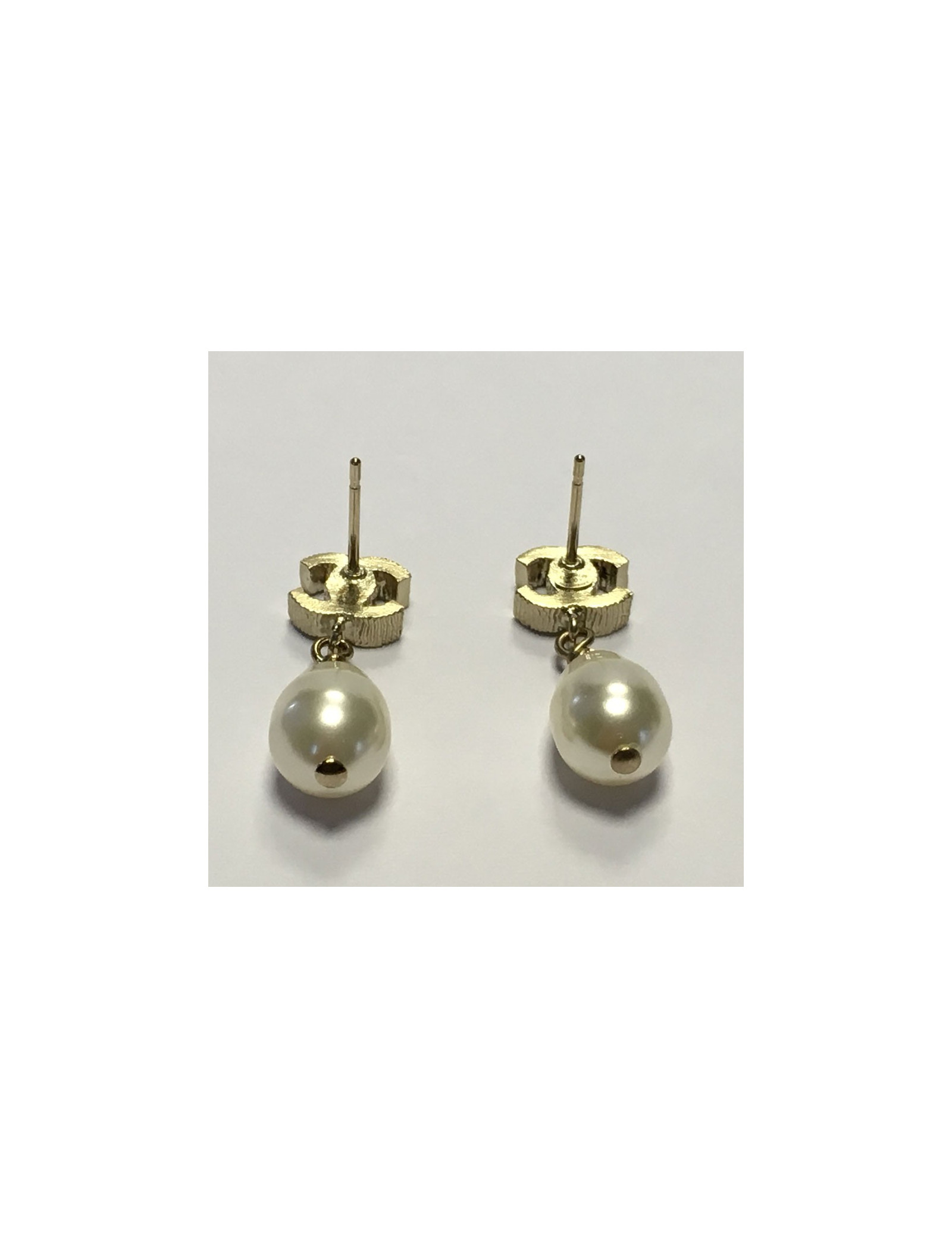 For VC nails CHANEL guilloché gold metal and hanging Pearl oval bead earrings