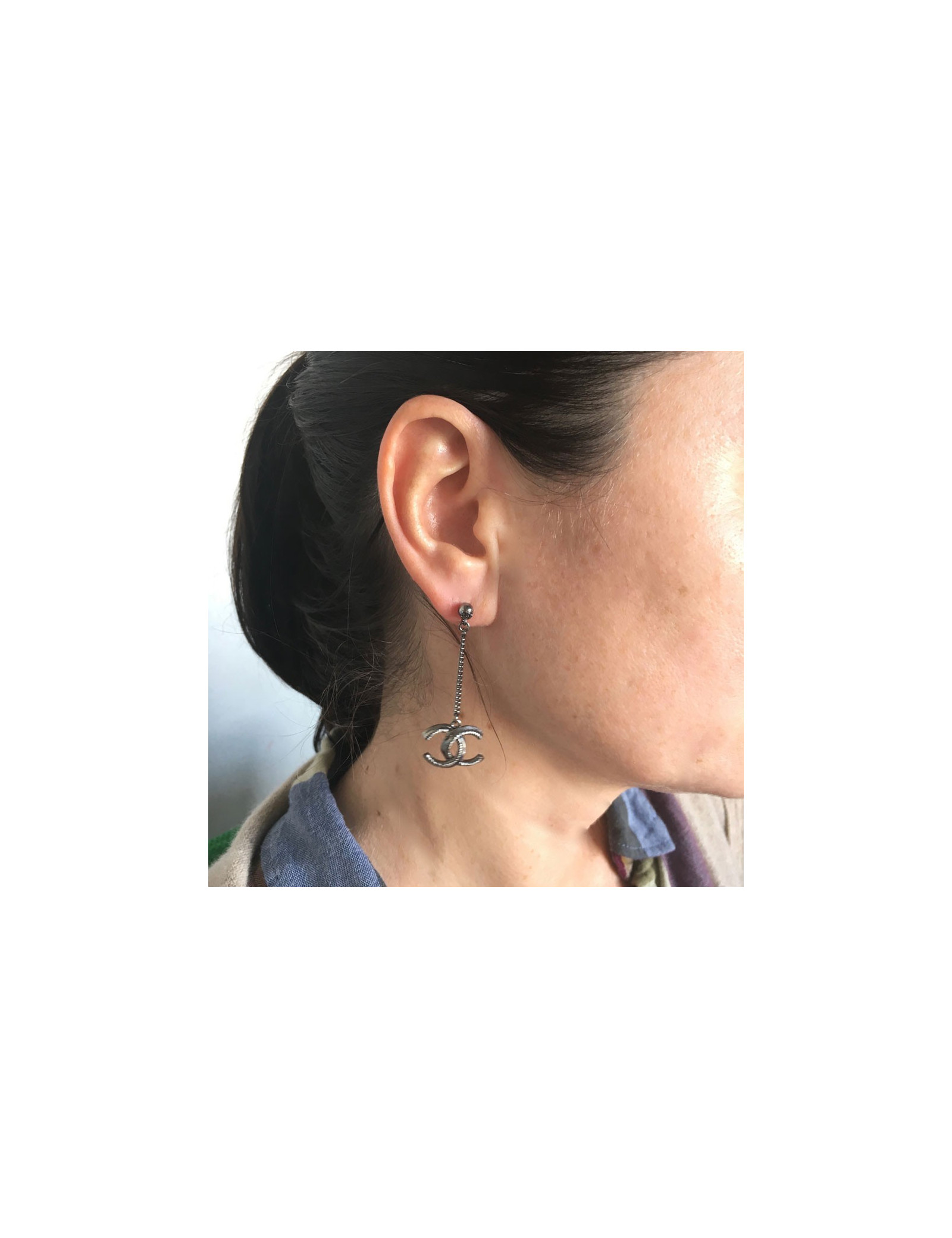Dangling silver metal nails CHANEL earrings